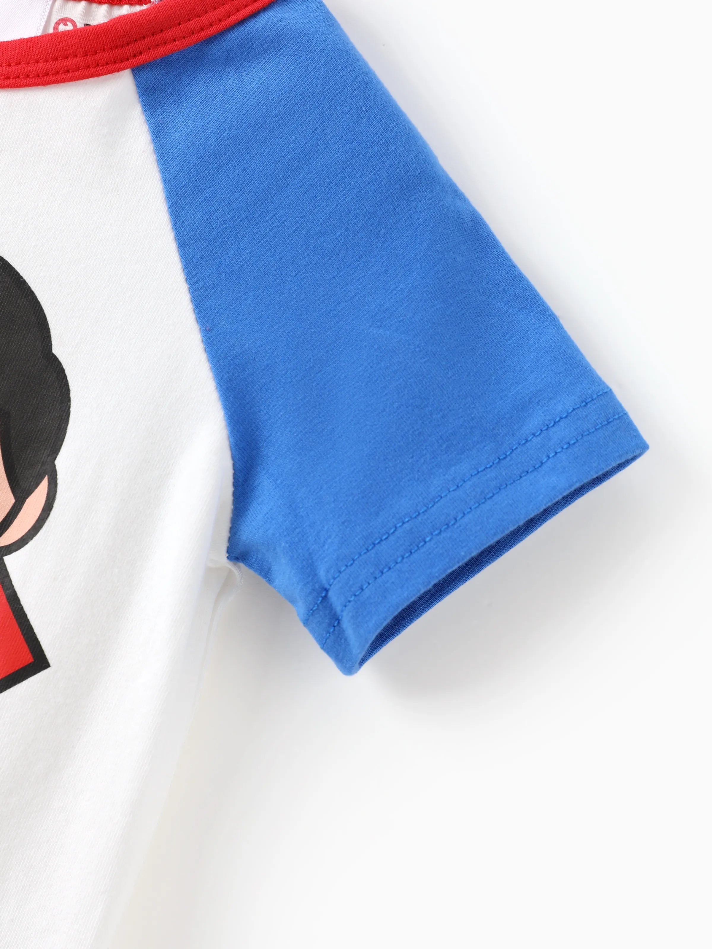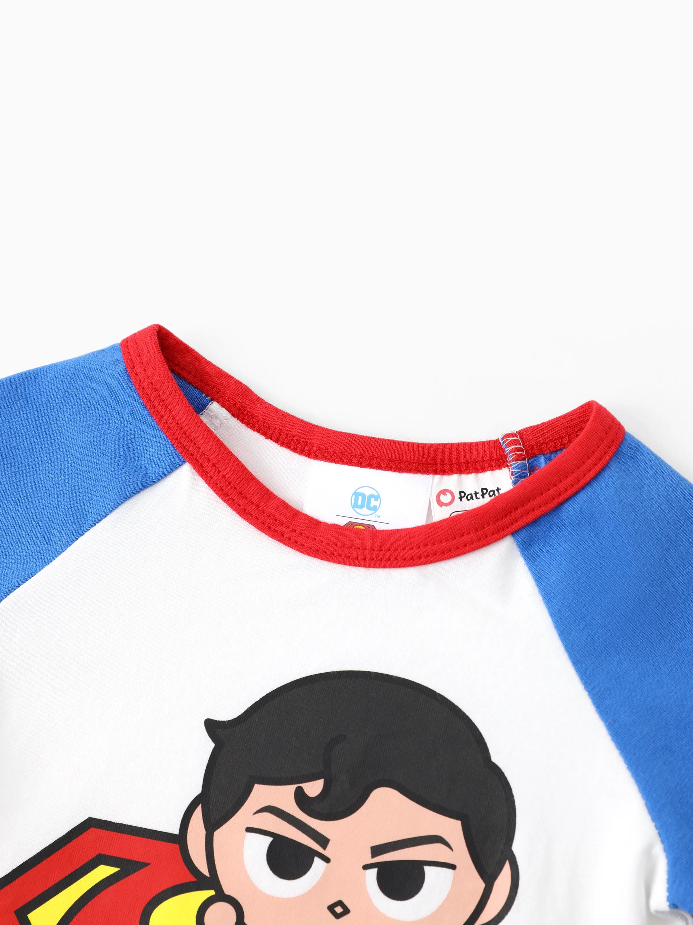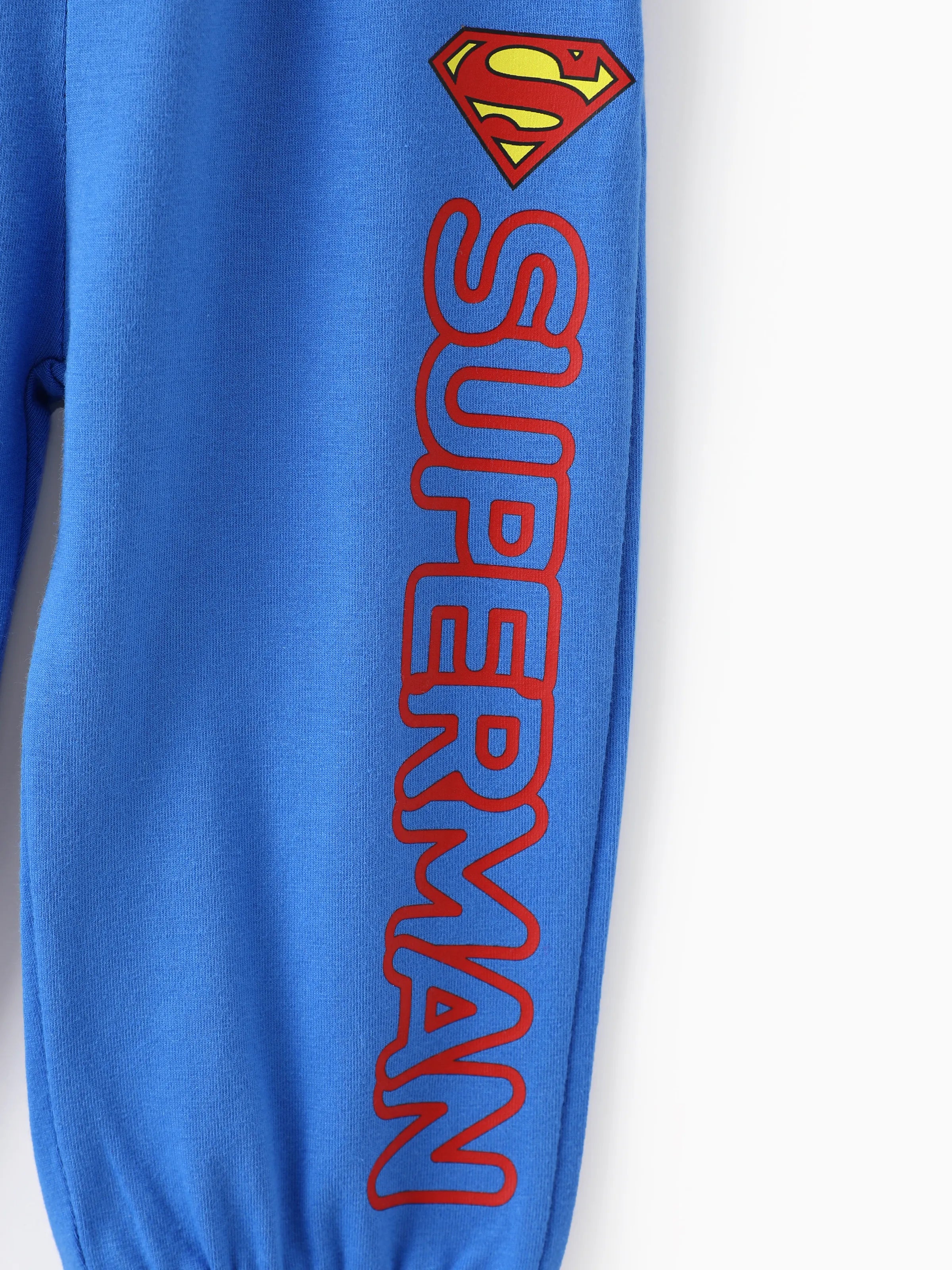 Justice League Baby Boy 2pcs Cotton Batman/Superman Print Colorblock Romper and Pants Set Blue