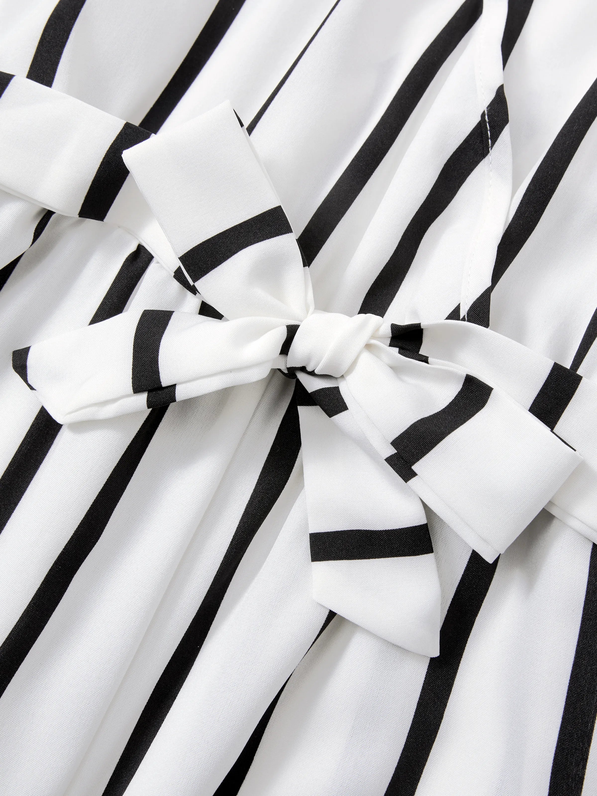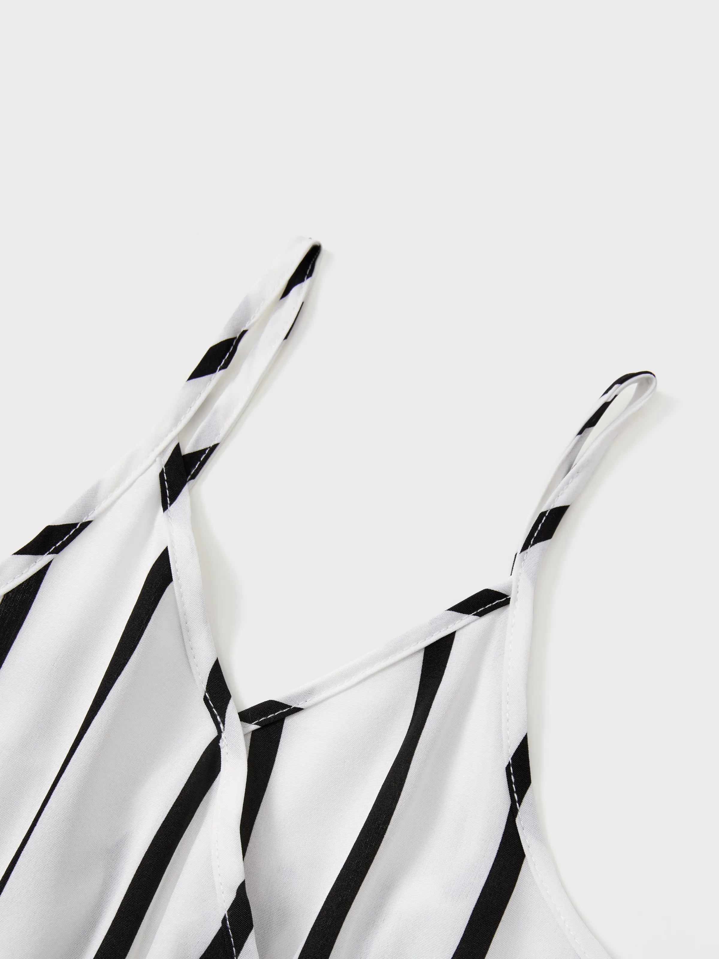 Kid Girl Stripe Surplice Neck Belted Cami Jumpsuits White