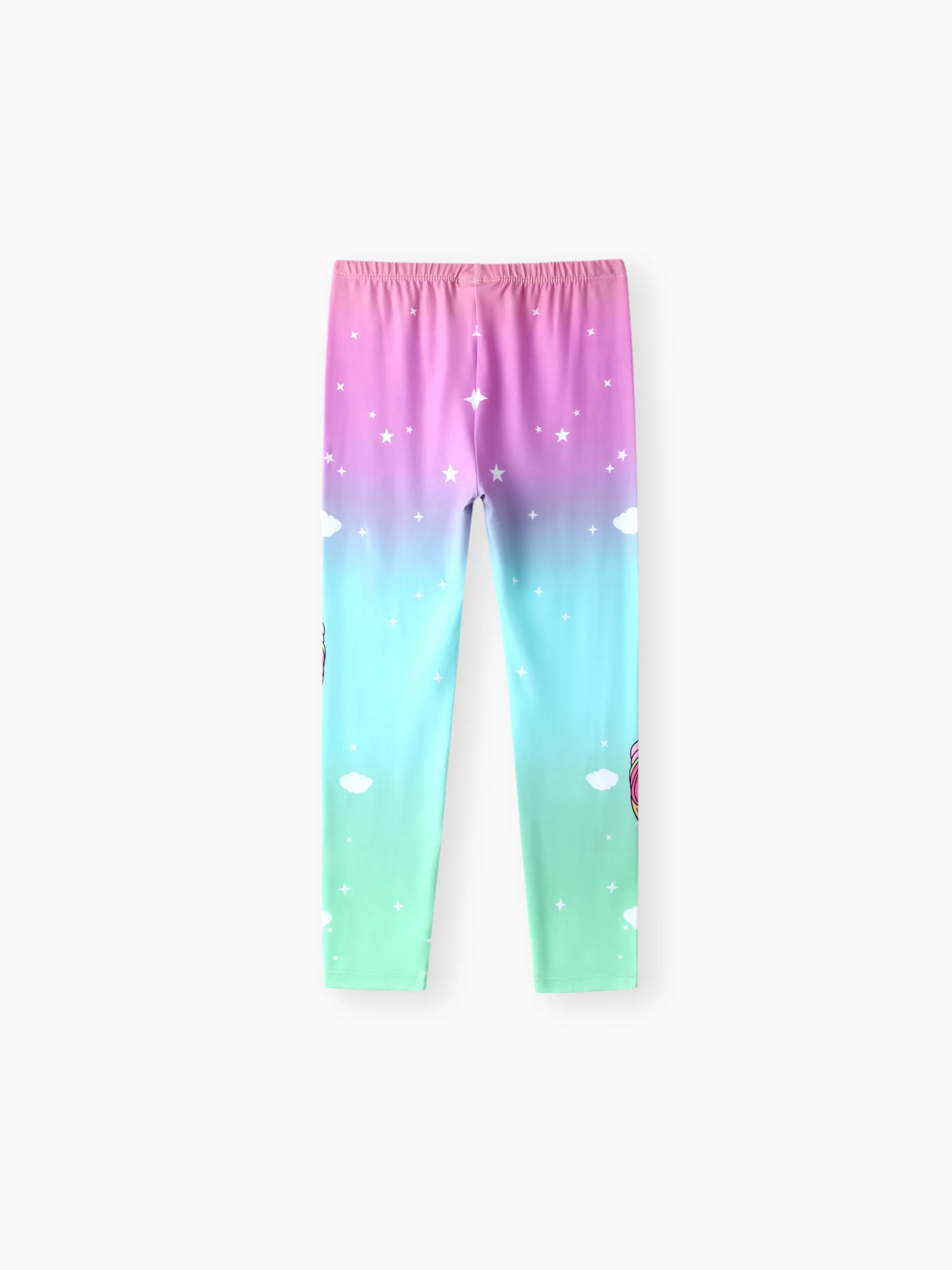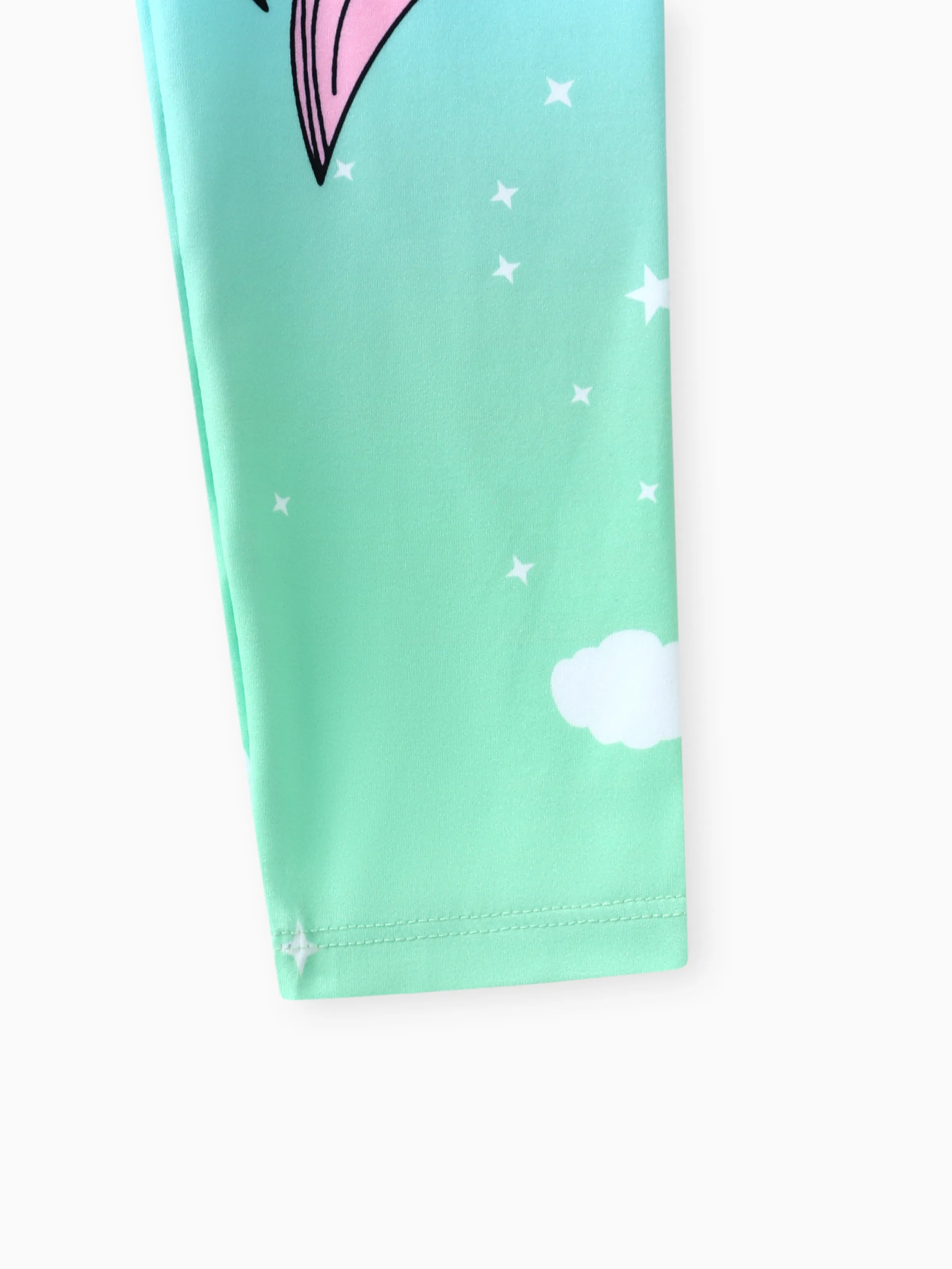 Kid Girl Unicorn Print Colorblock Elasticized Leggings Green
