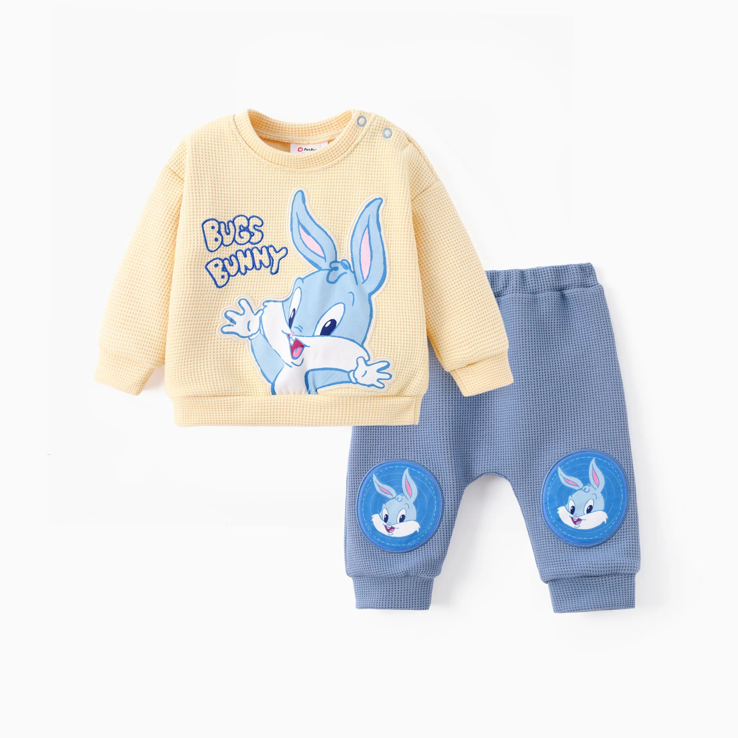 Looney Tunes Baby Boy 2pcs Character Embroidered Long-sleeve Knitted Top And Pants Set Blue