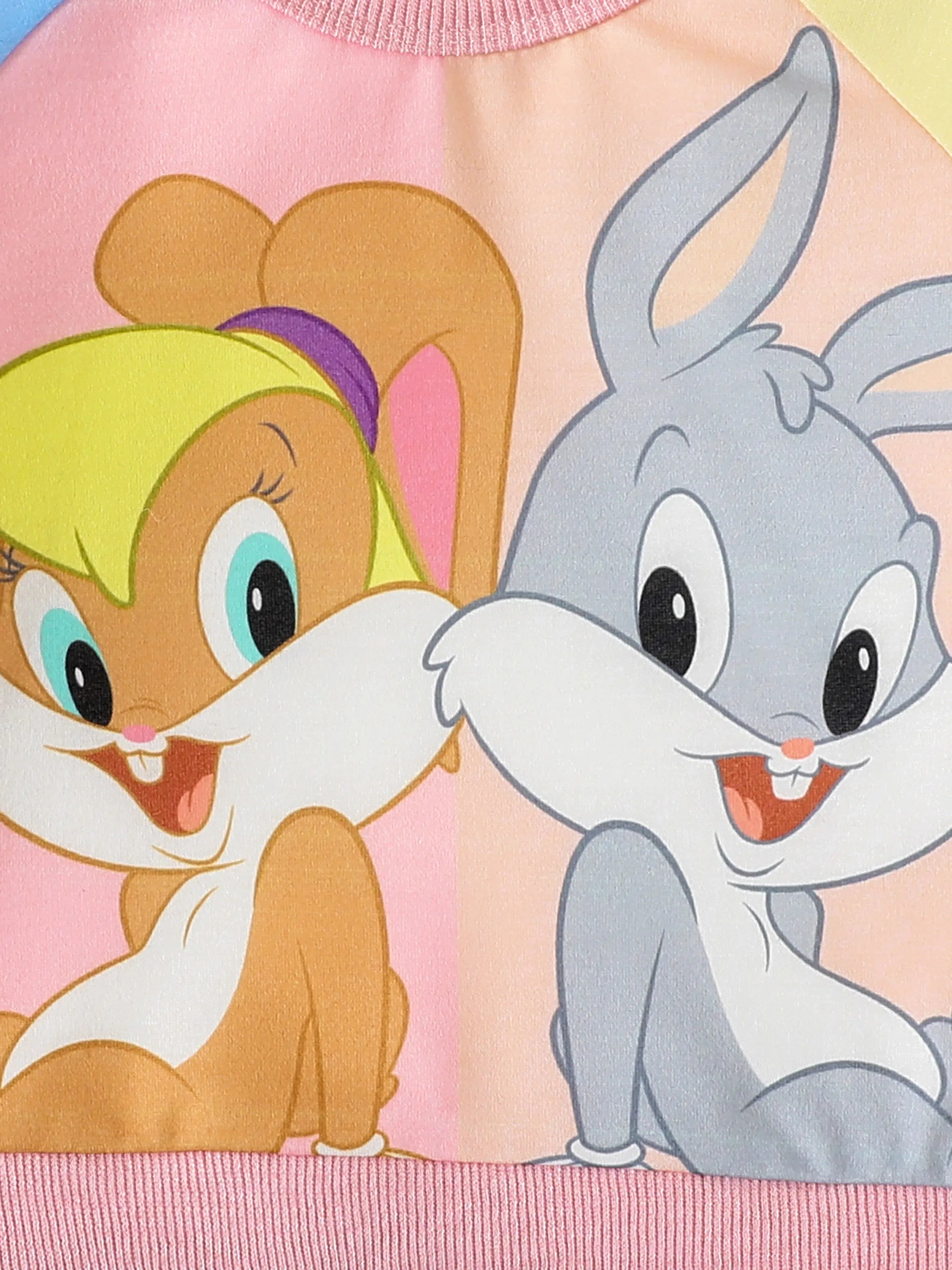 Looney Tunes Baby Girl Cartoon Print Colorblock Long-sleeve Sweatshirt Light Blue