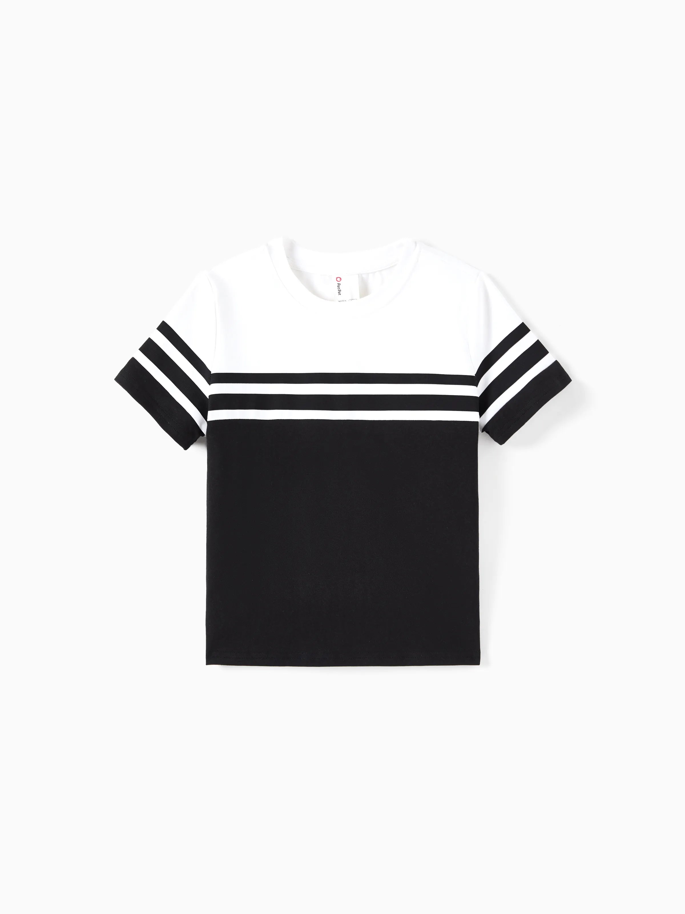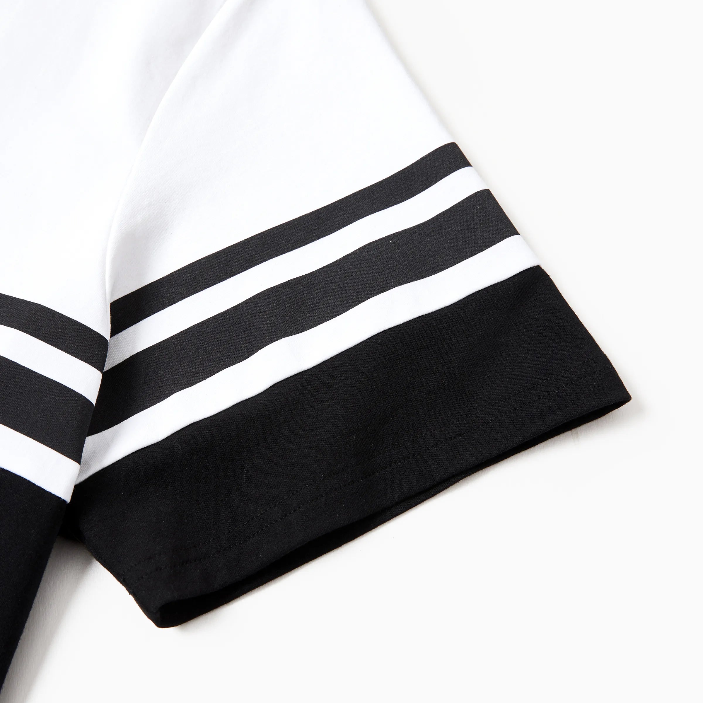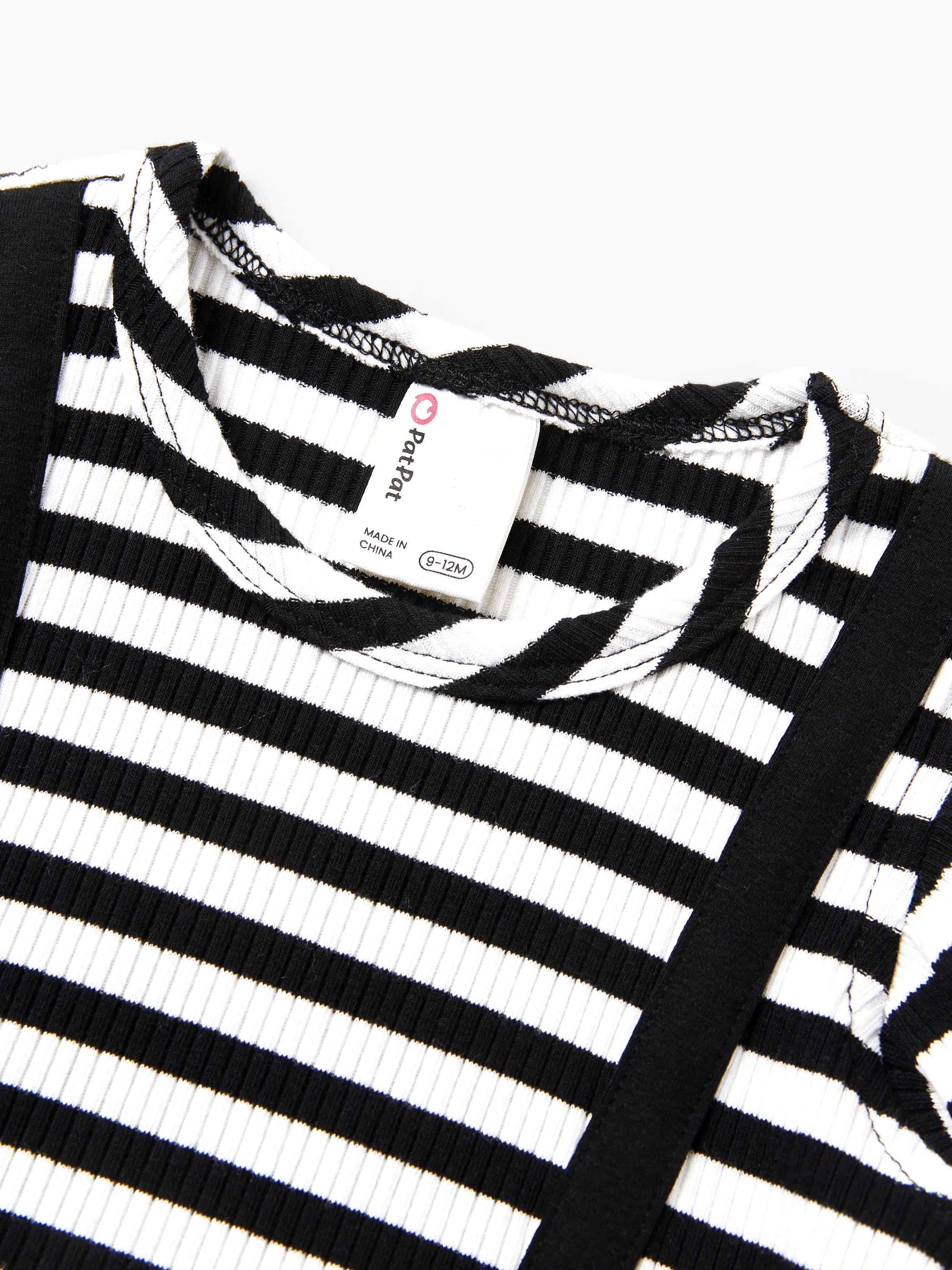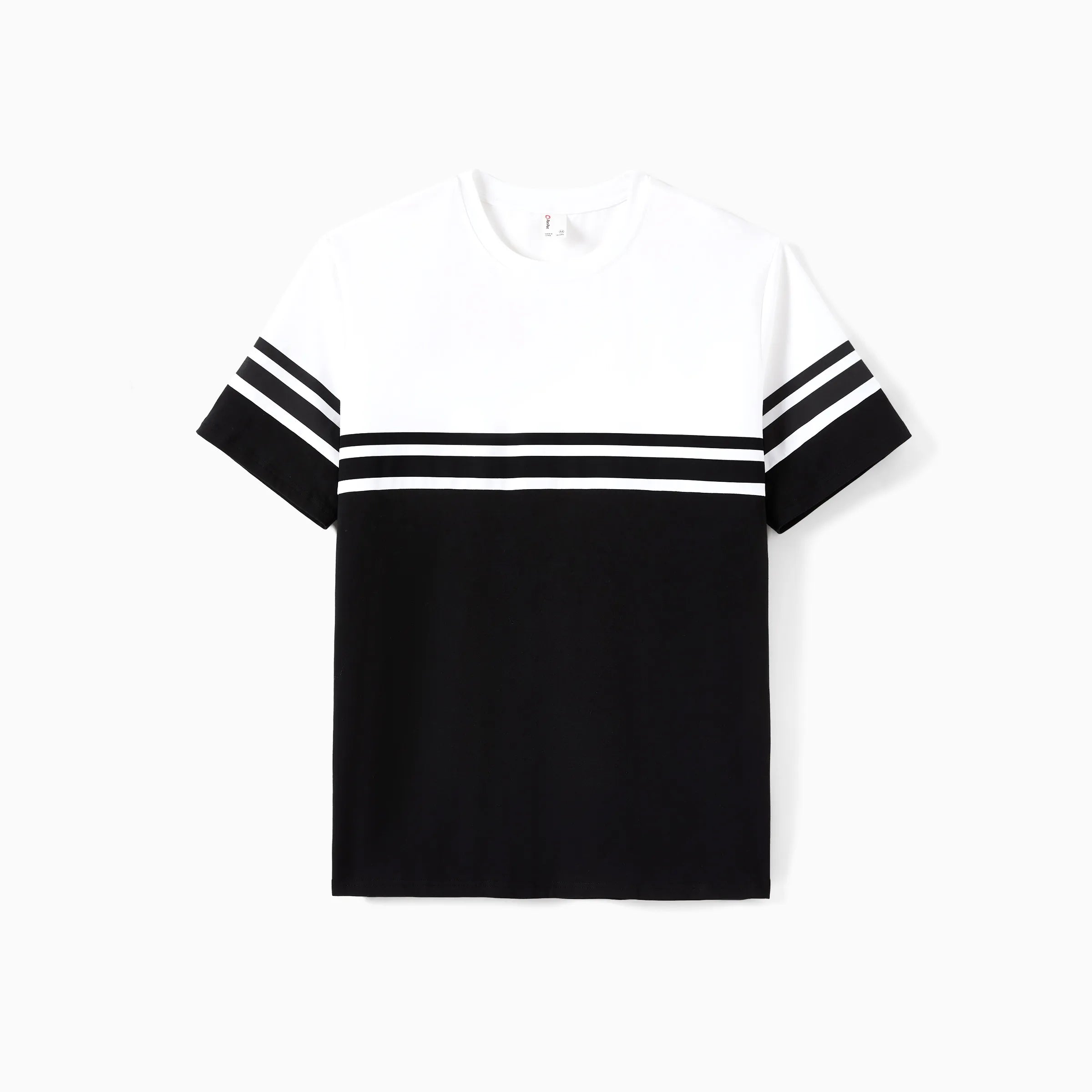 Matching Family Outfits ¨C Black & White Striped Casual Short Sleeve T-Shirt for Men & Boy, Crop Top & Midi Skirt Co-ord Set for women & Girl, Flared Dresses for Baby Girl ¨C Stylish Summer Family Coordinated Cotton Set Black+White