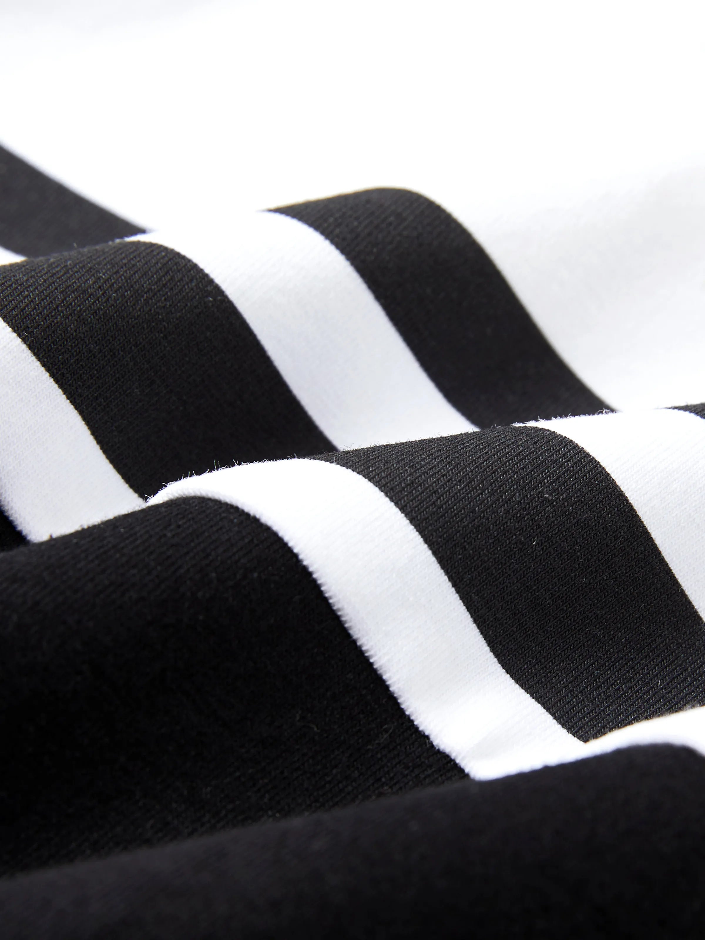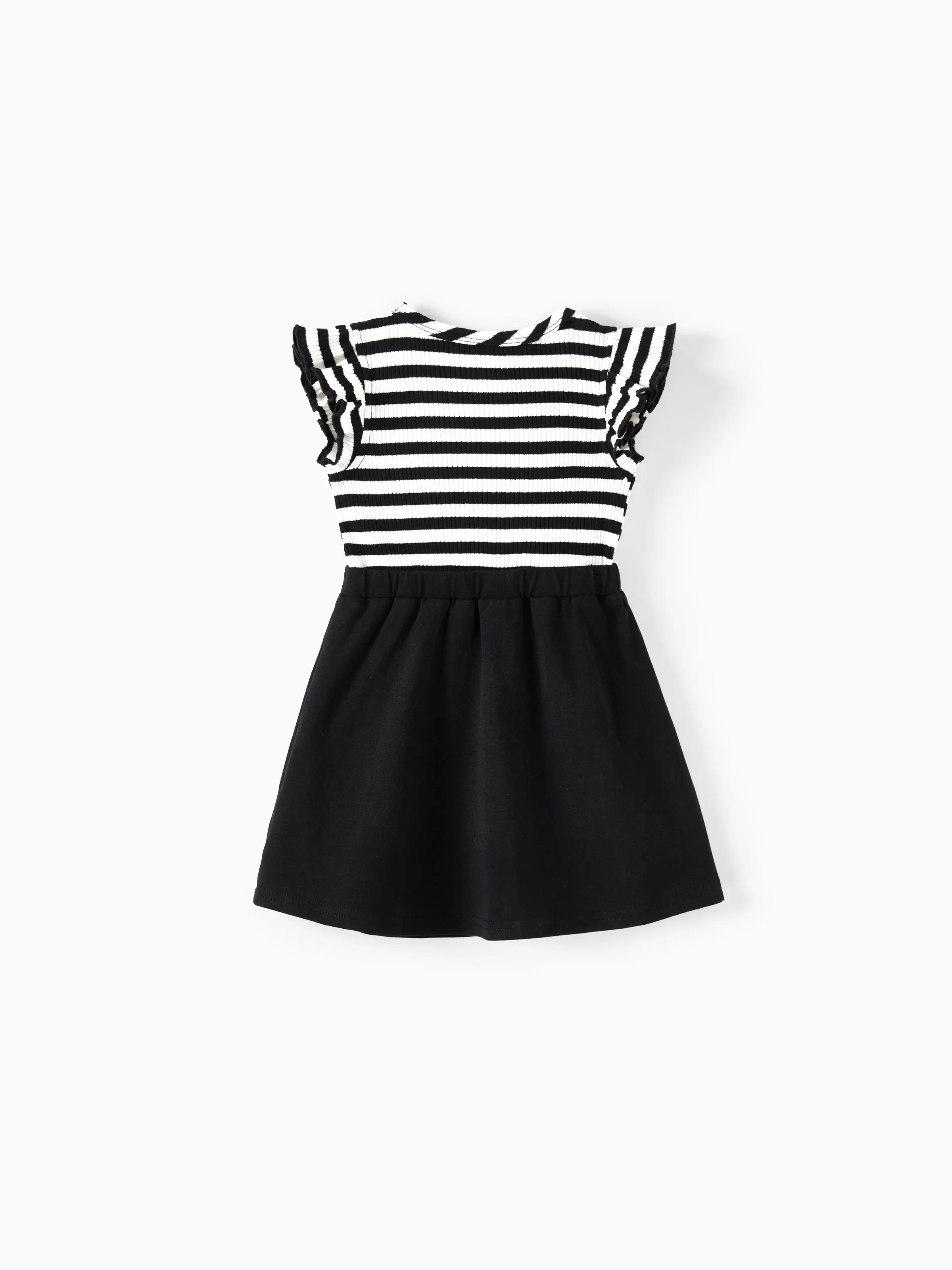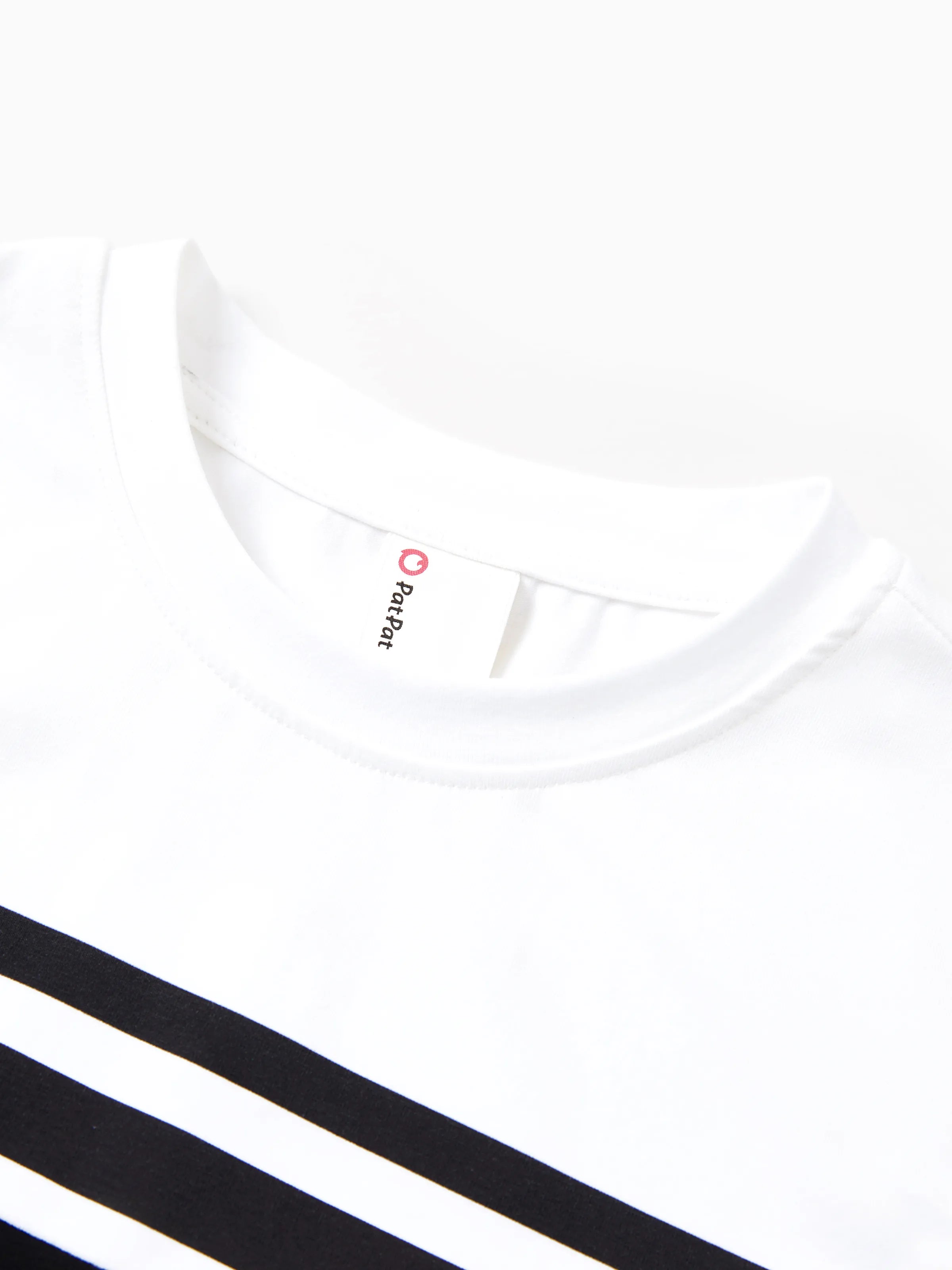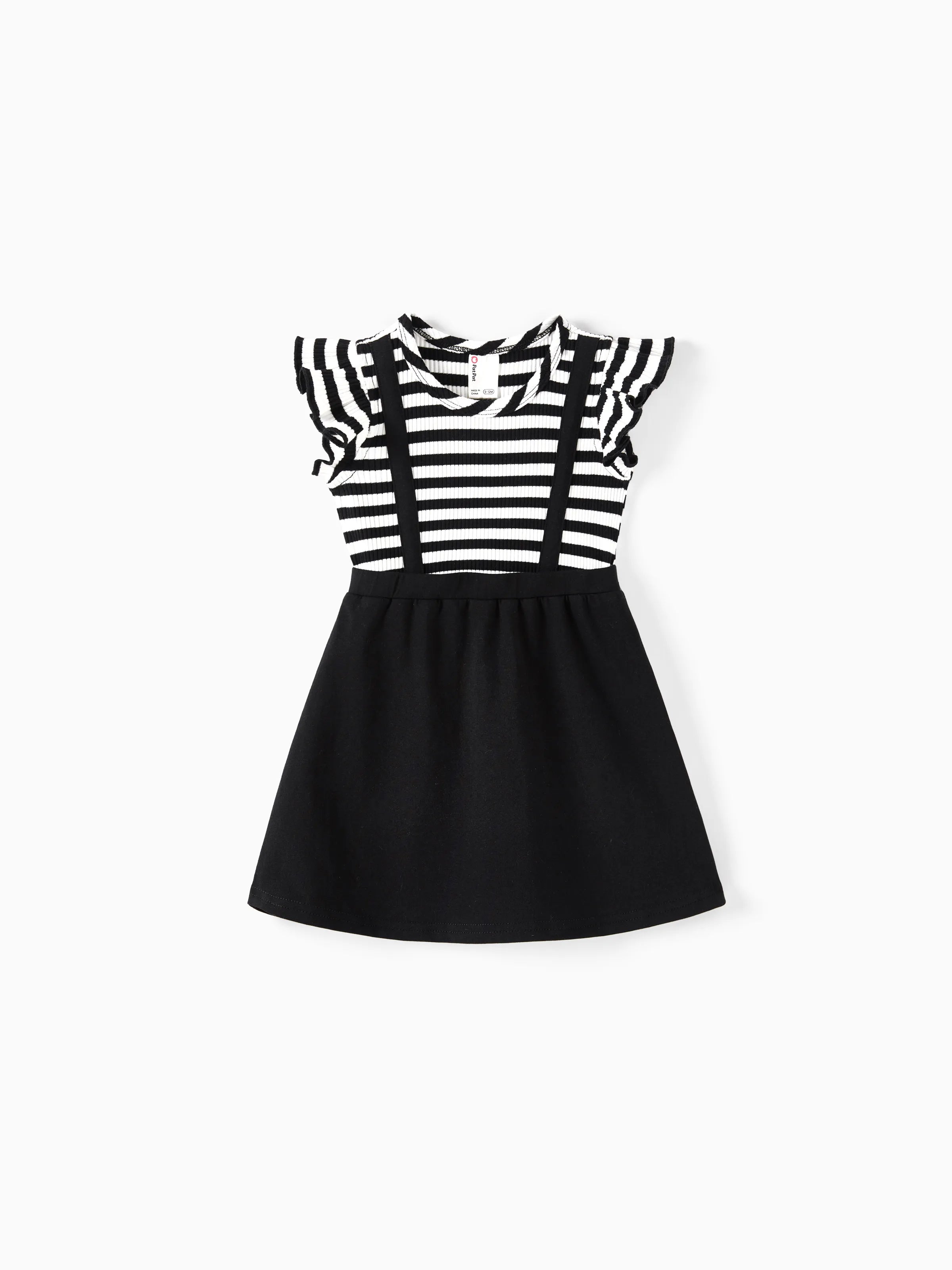 Matching Family Outfits ¨C Black & White Striped Casual Short Sleeve T-Shirt for Men & Boy, Crop Top & Midi Skirt Co-ord Set for women & Girl, Flared Dresses for Baby Girl ¨C Stylish Summer Family Coordinated Cotton Set Black+White