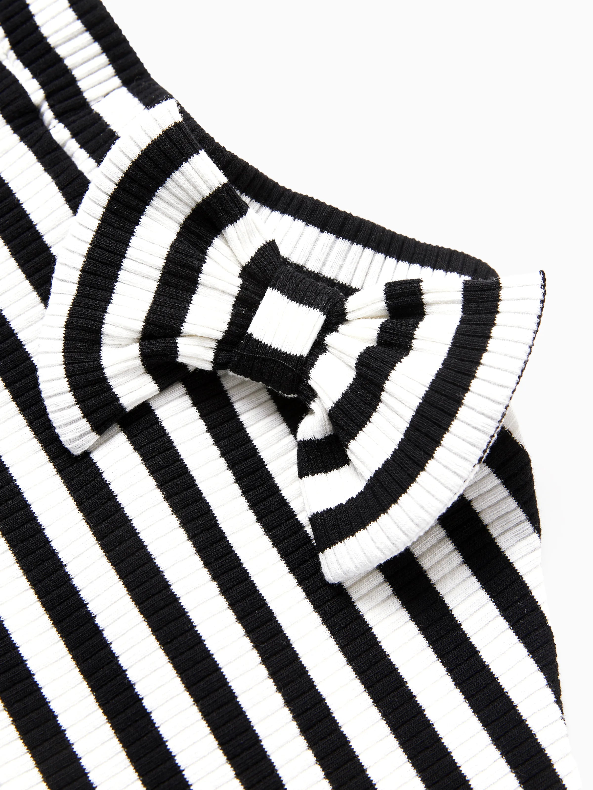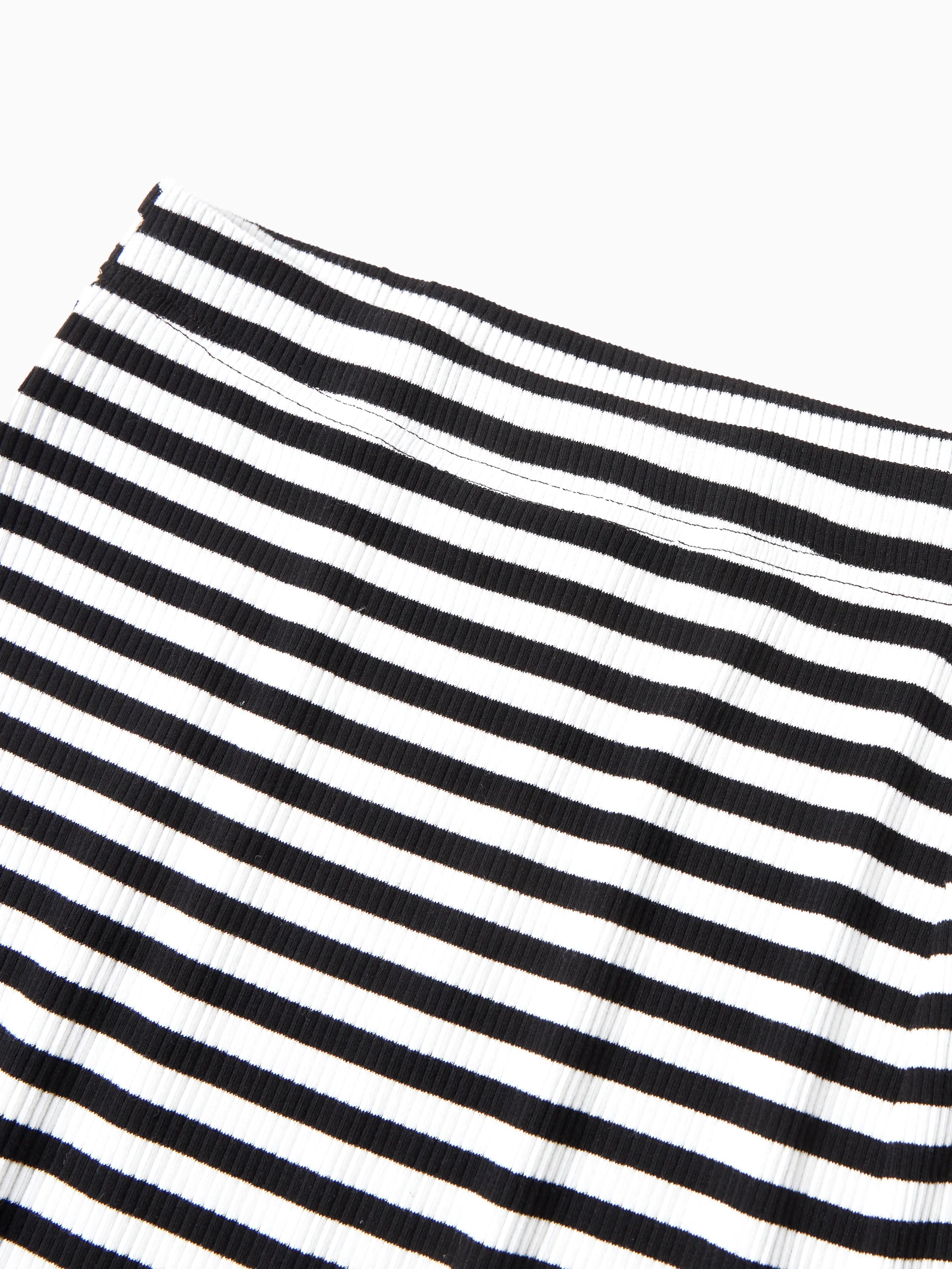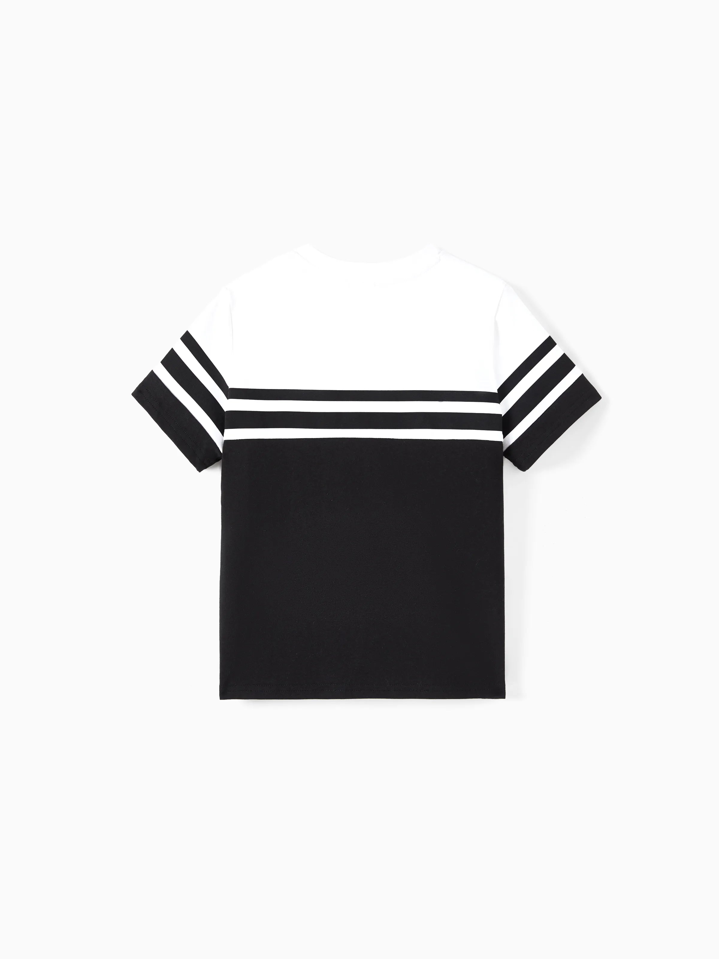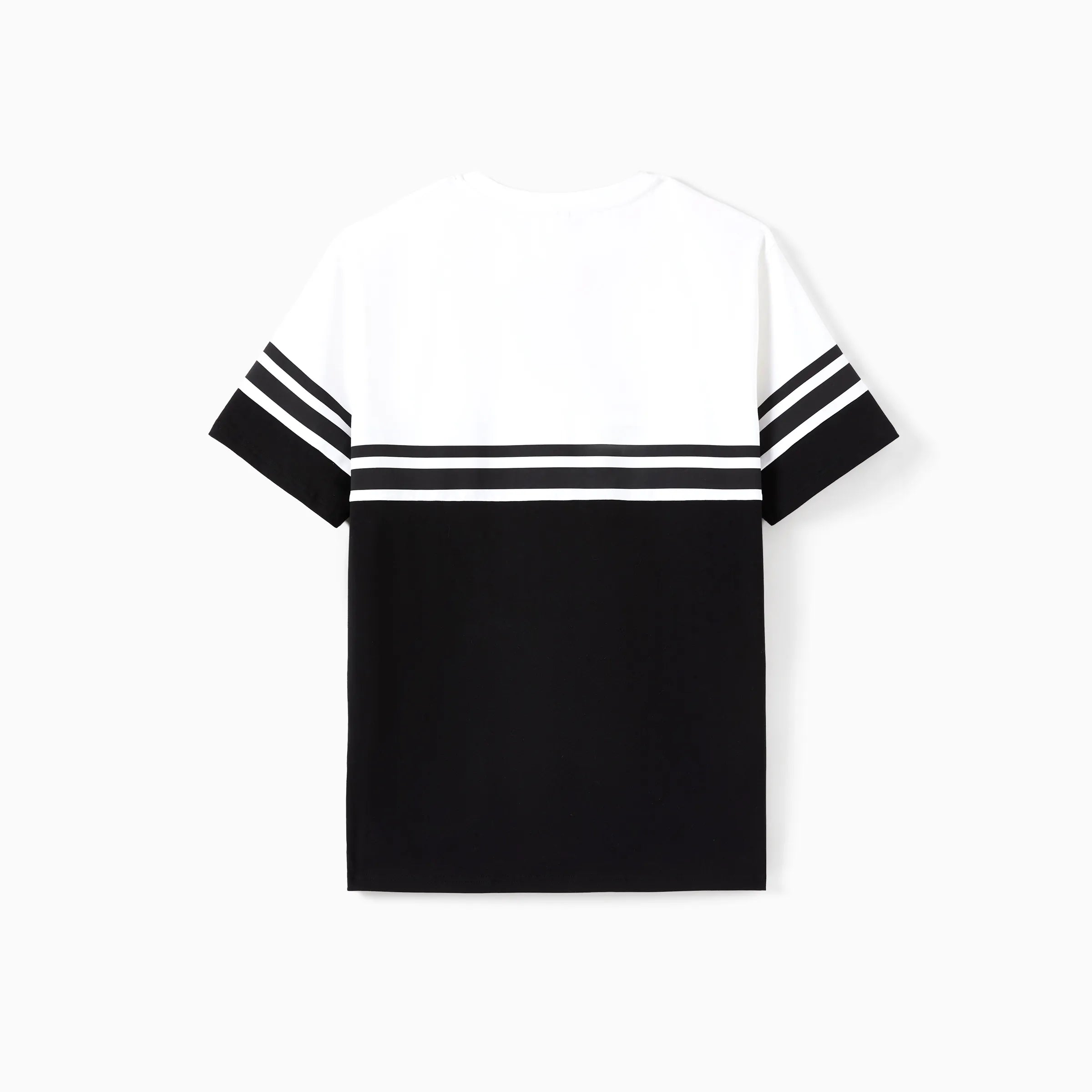 Matching Family Outfits ¨C Black & White Striped Casual Short Sleeve T-Shirt for Men & Boy, Crop Top & Midi Skirt Co-ord Set for women & Girl, Flared Dresses for Baby Girl ¨C Stylish Summer Family Coordinated Cotton Set Black+White