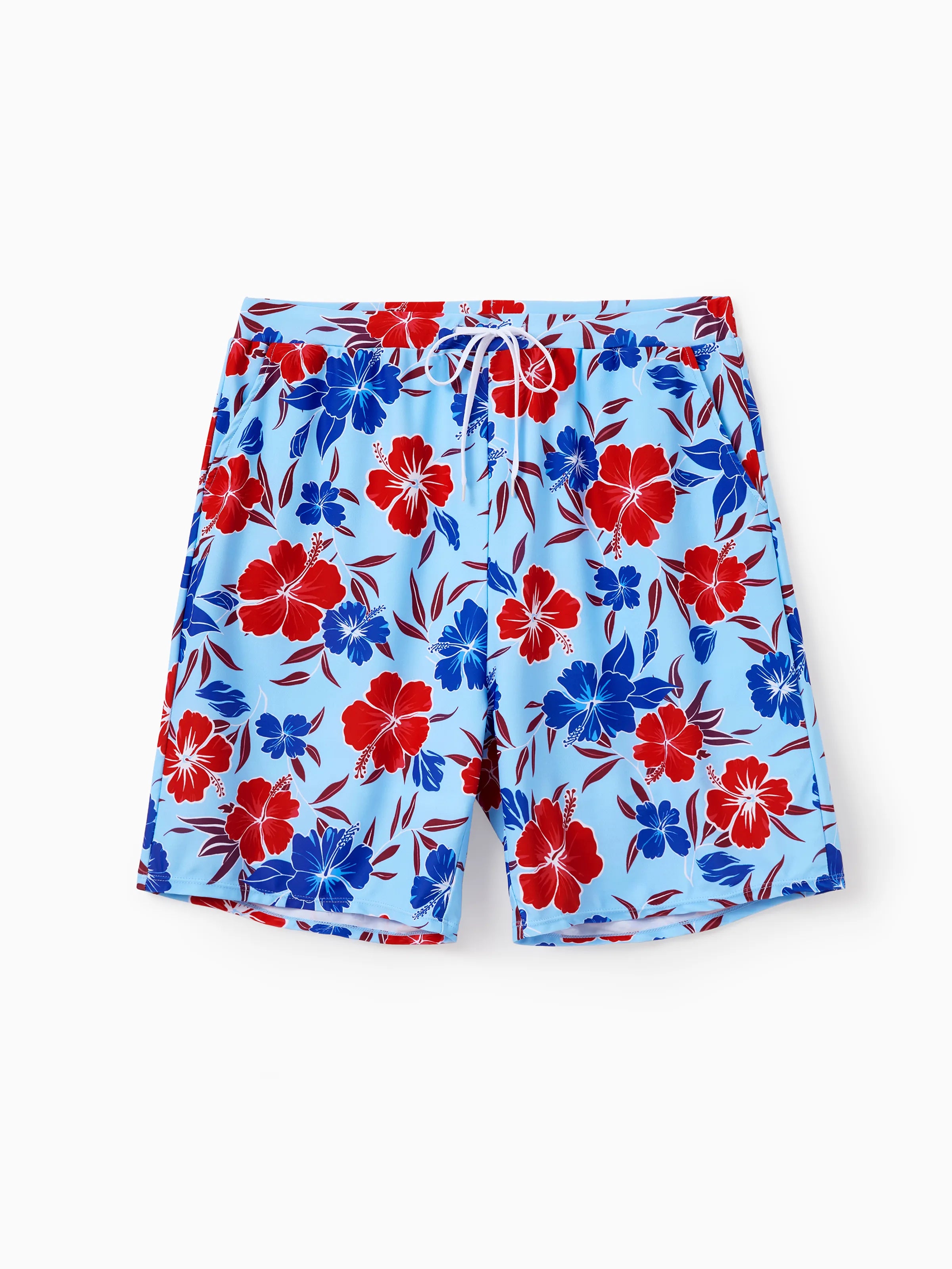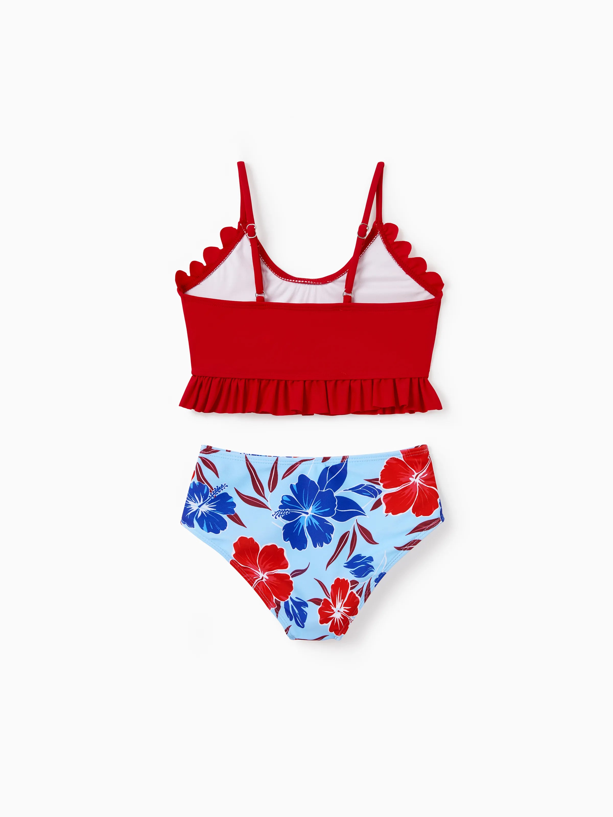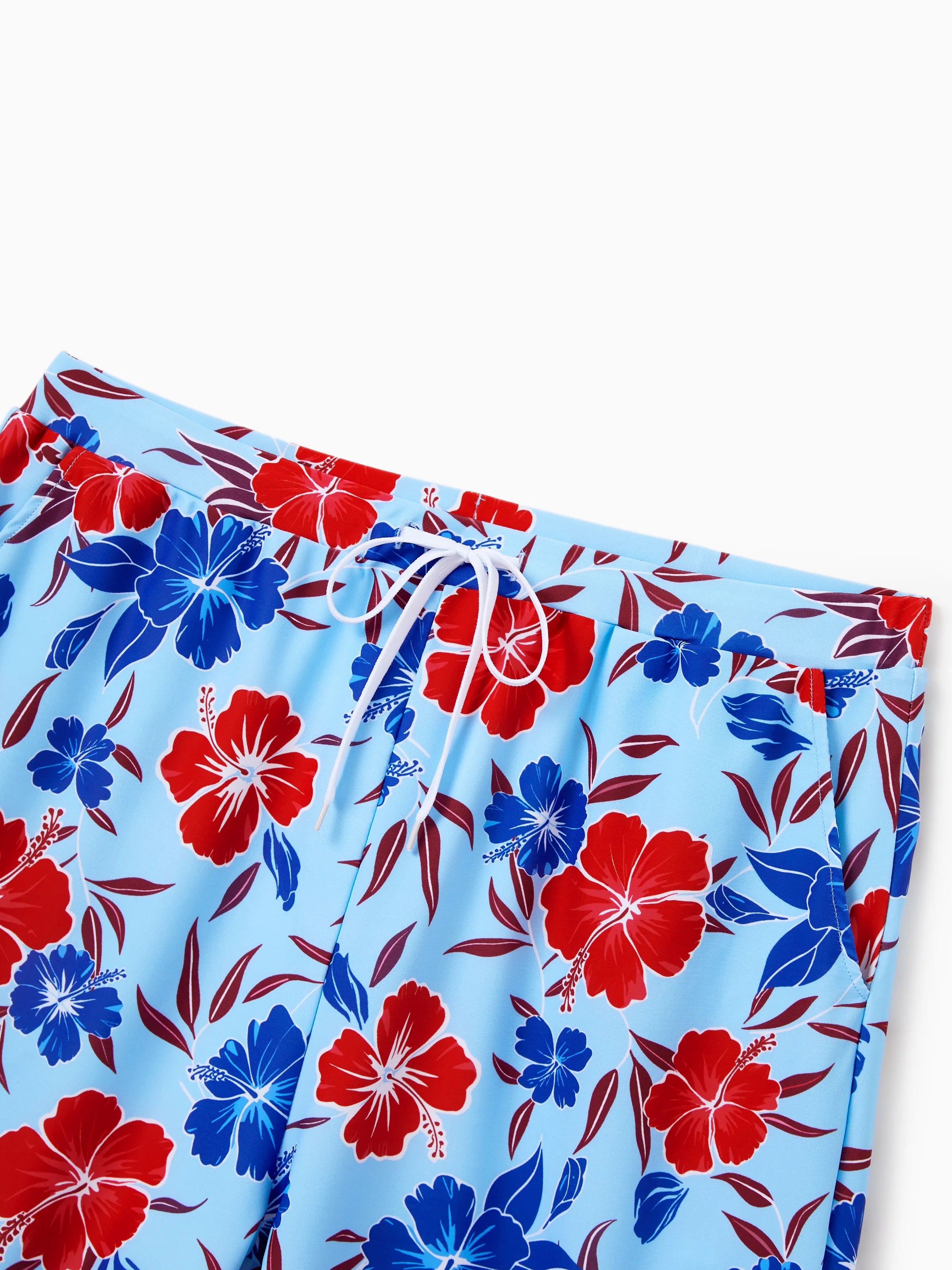 Matching Family Swimwear Floral Print Bikini & Swim Trunks Set for Mom, Dad, & Kids, Perfect for Summer Beach Days & Pool Parties Red
