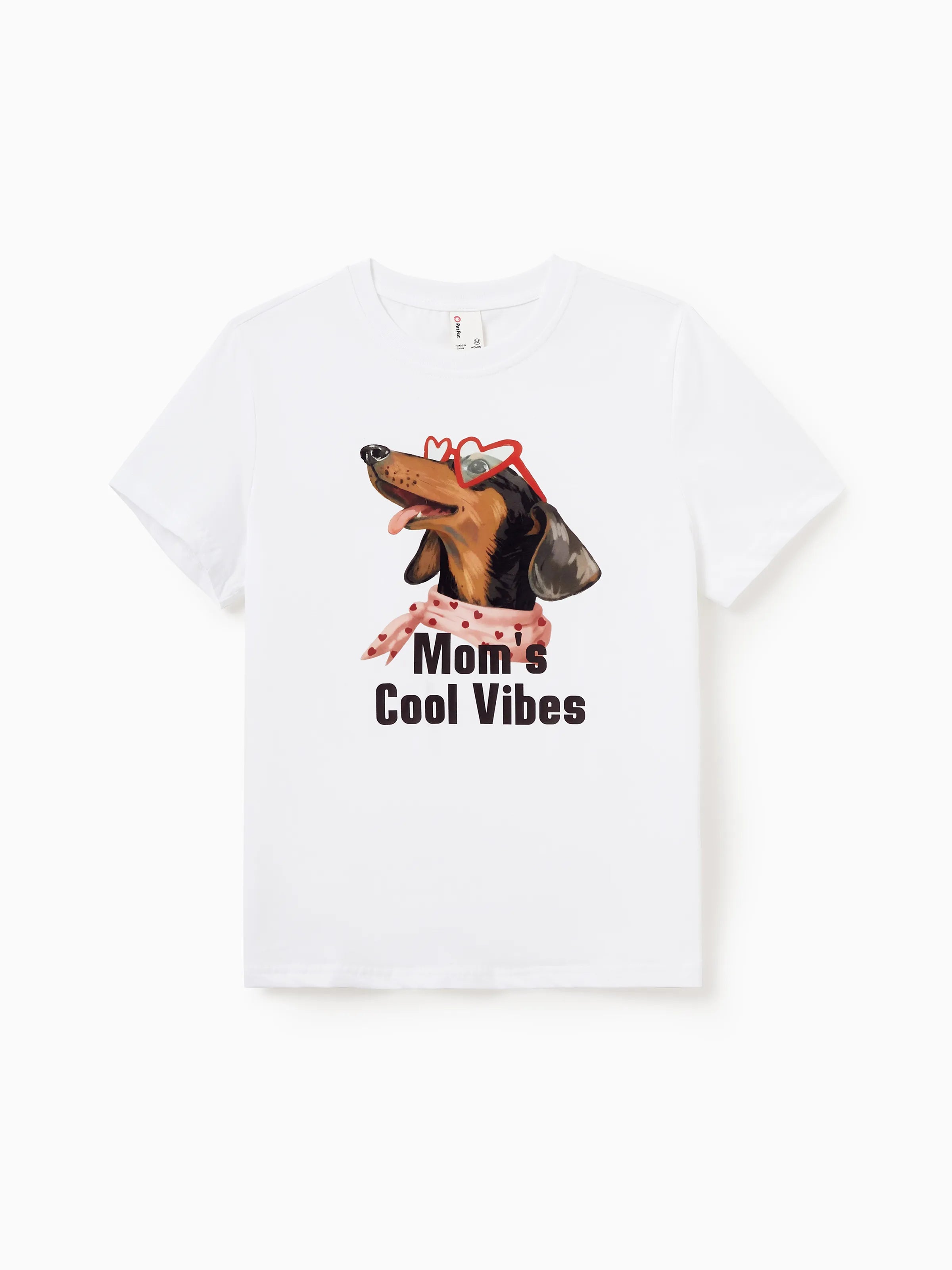 Celebrate your playful bond with this adorable dog-themed matching Cotton tee! Featuring a stylish dachshund graphic with retro sunglasses and the fun slogan “Mom’s Cool Vibes,” it’s the perfect way to showcase your mother-daughter connection in a cute, casual style.
