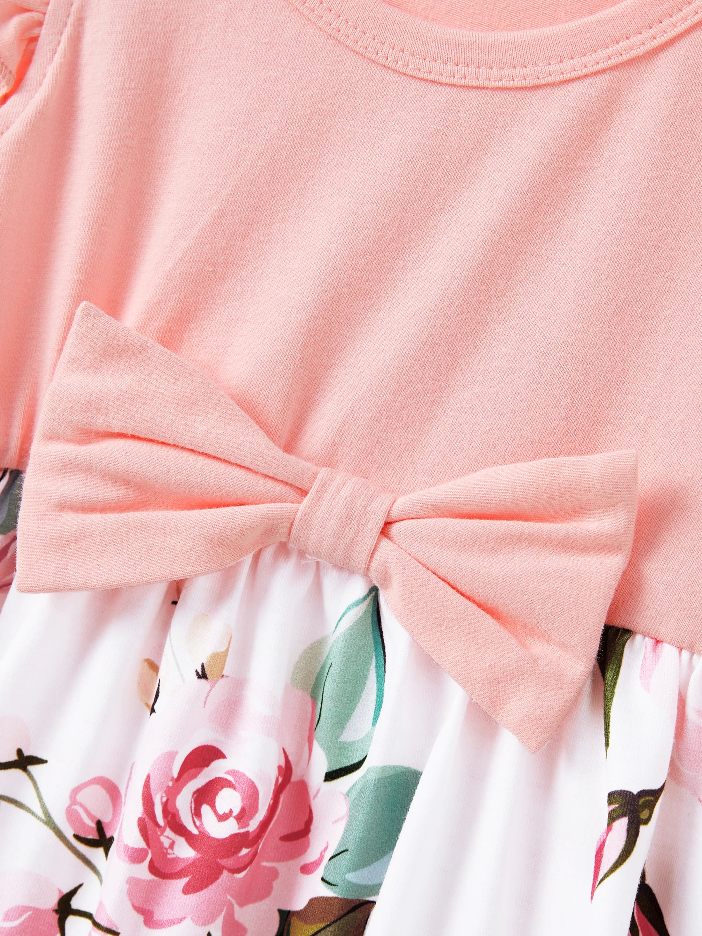 Mommy and Me Family Matching Pink Sleeveless Splicing Floral Print Midi Dresses and Colorblock Short-sleeve Polo Shirts Sets Pink