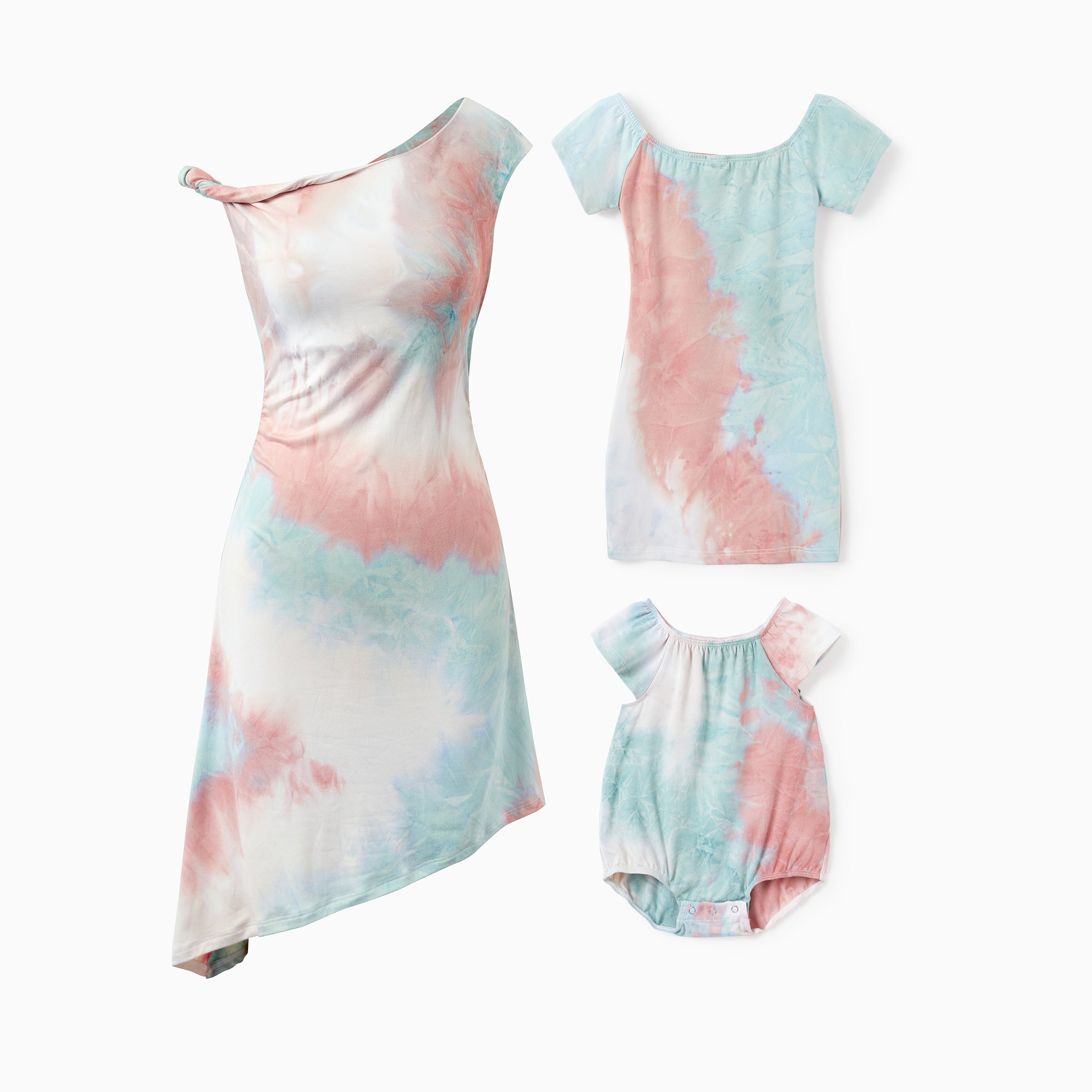 Mommy and Me Matching Tie Dye Dress Set for Women, Girls & Baby Romper Multi-color