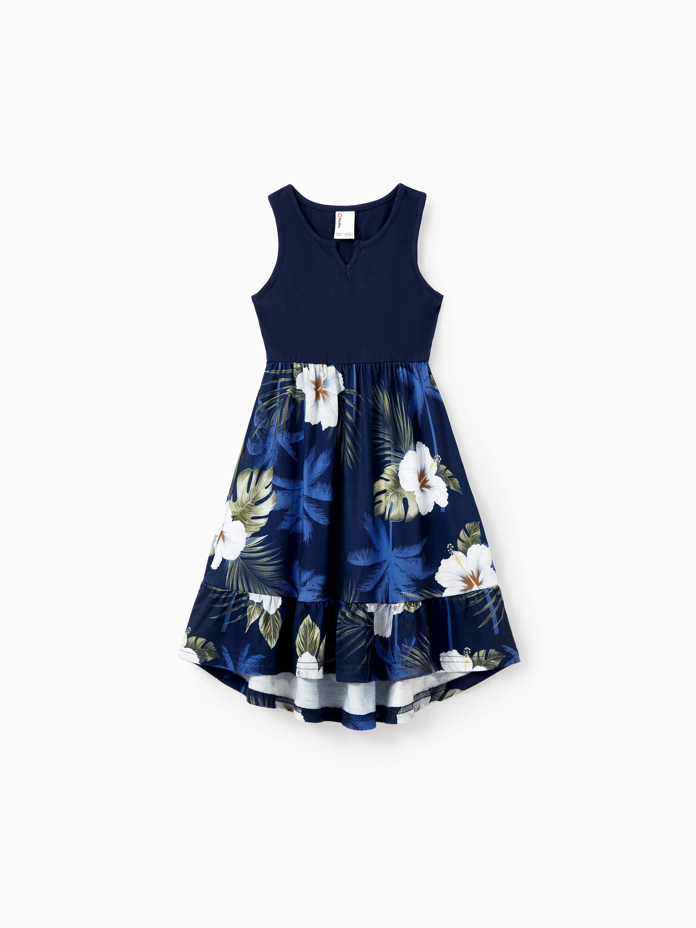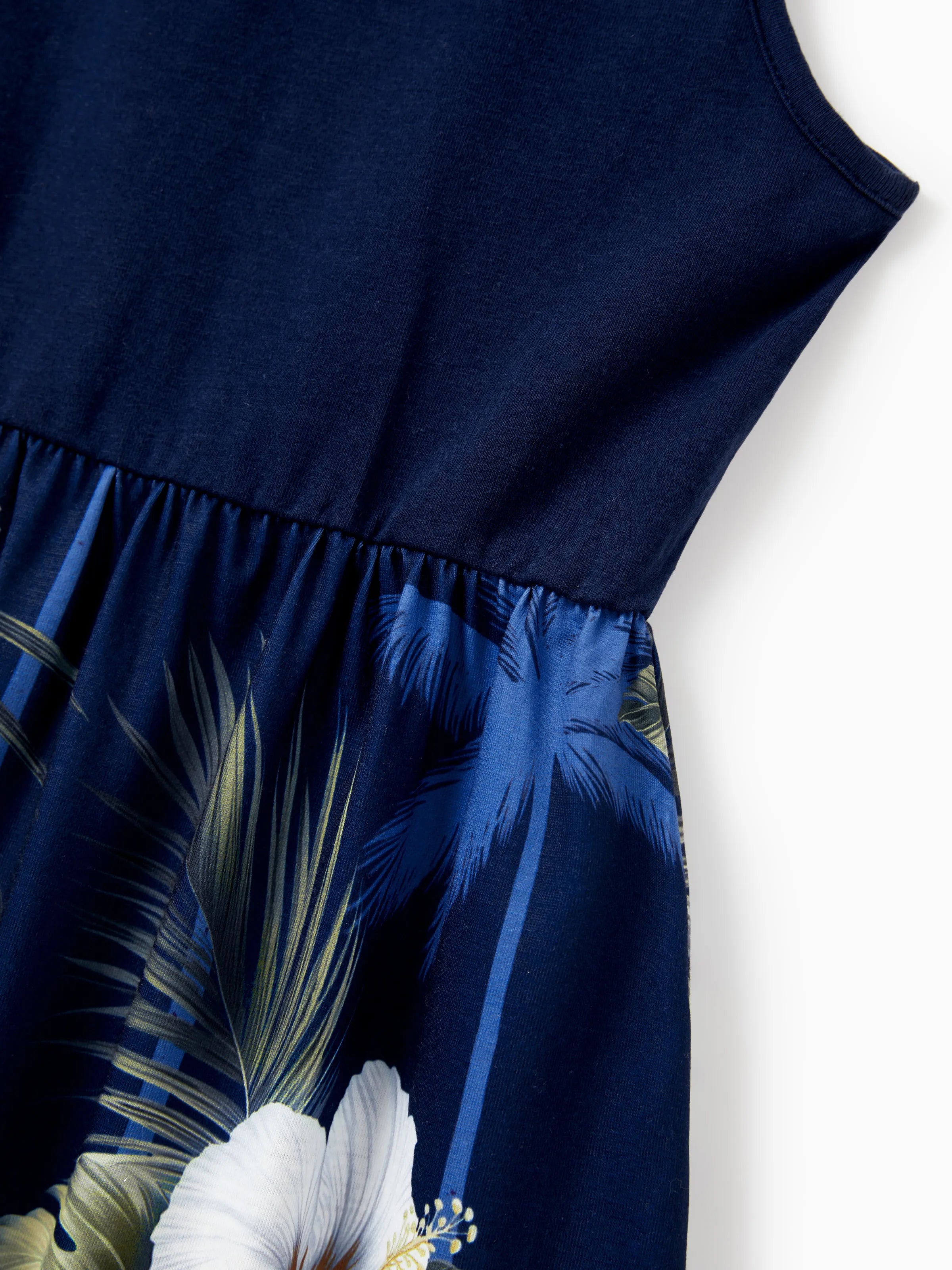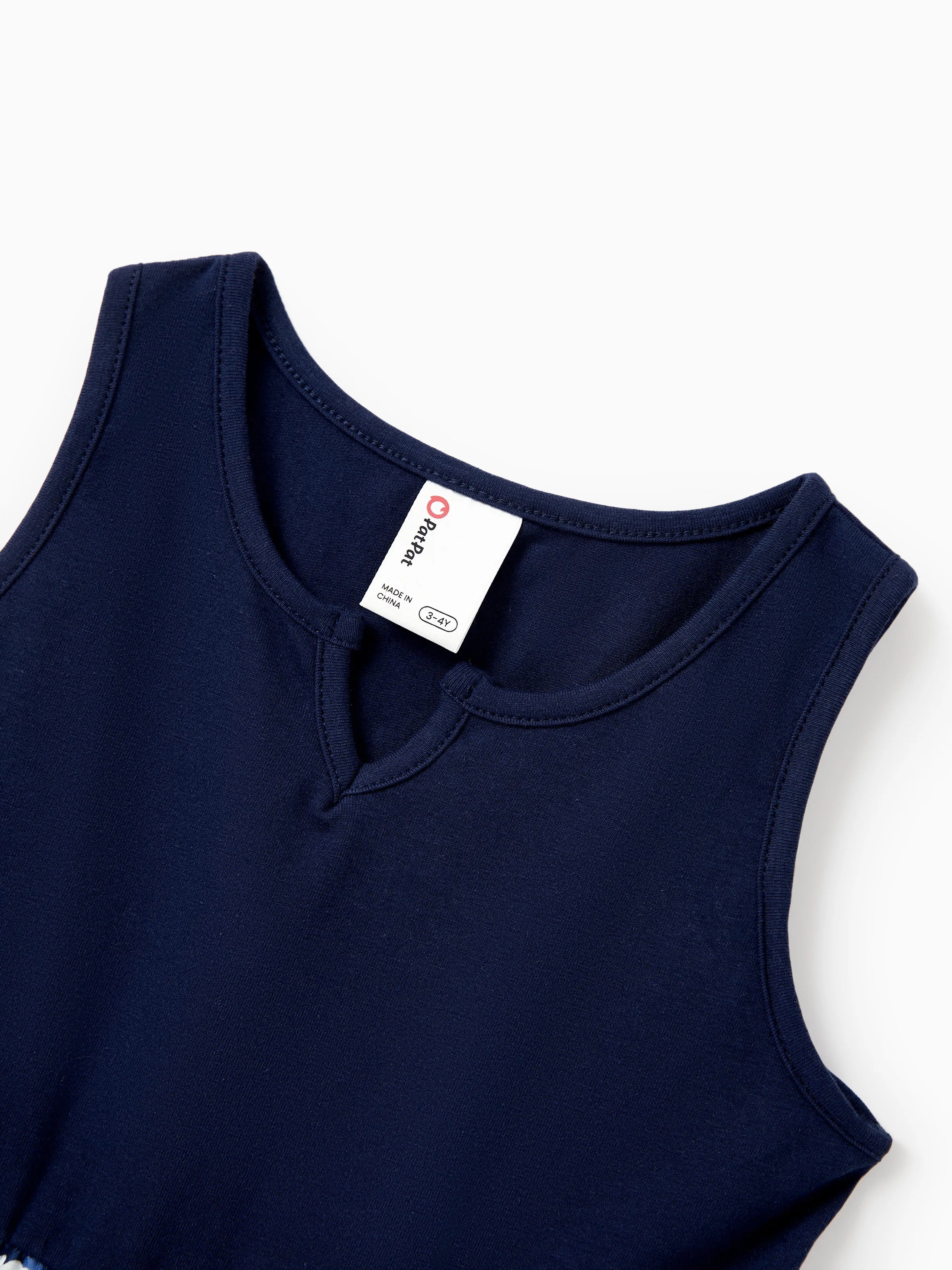 Mommy & me Floral Print Splicing Sleeveless Tank Dress Deep Blue