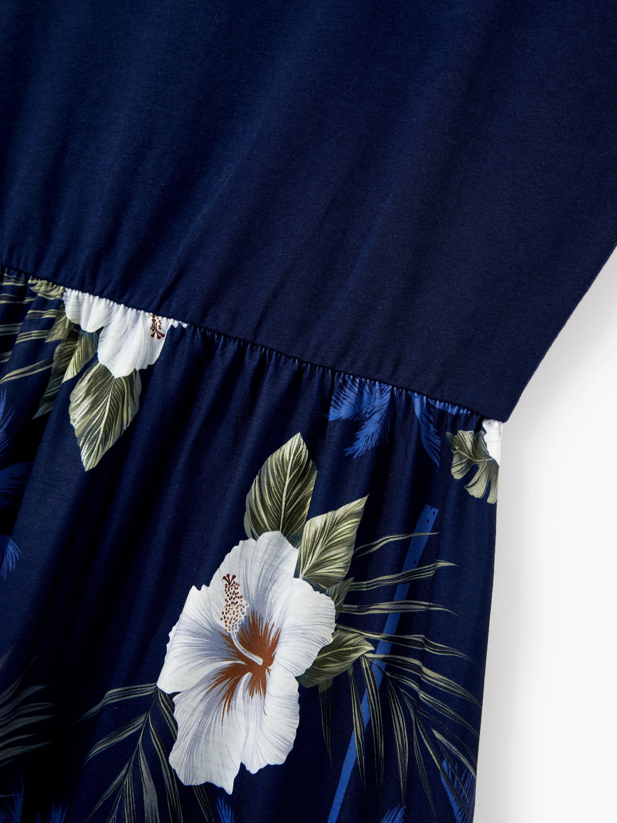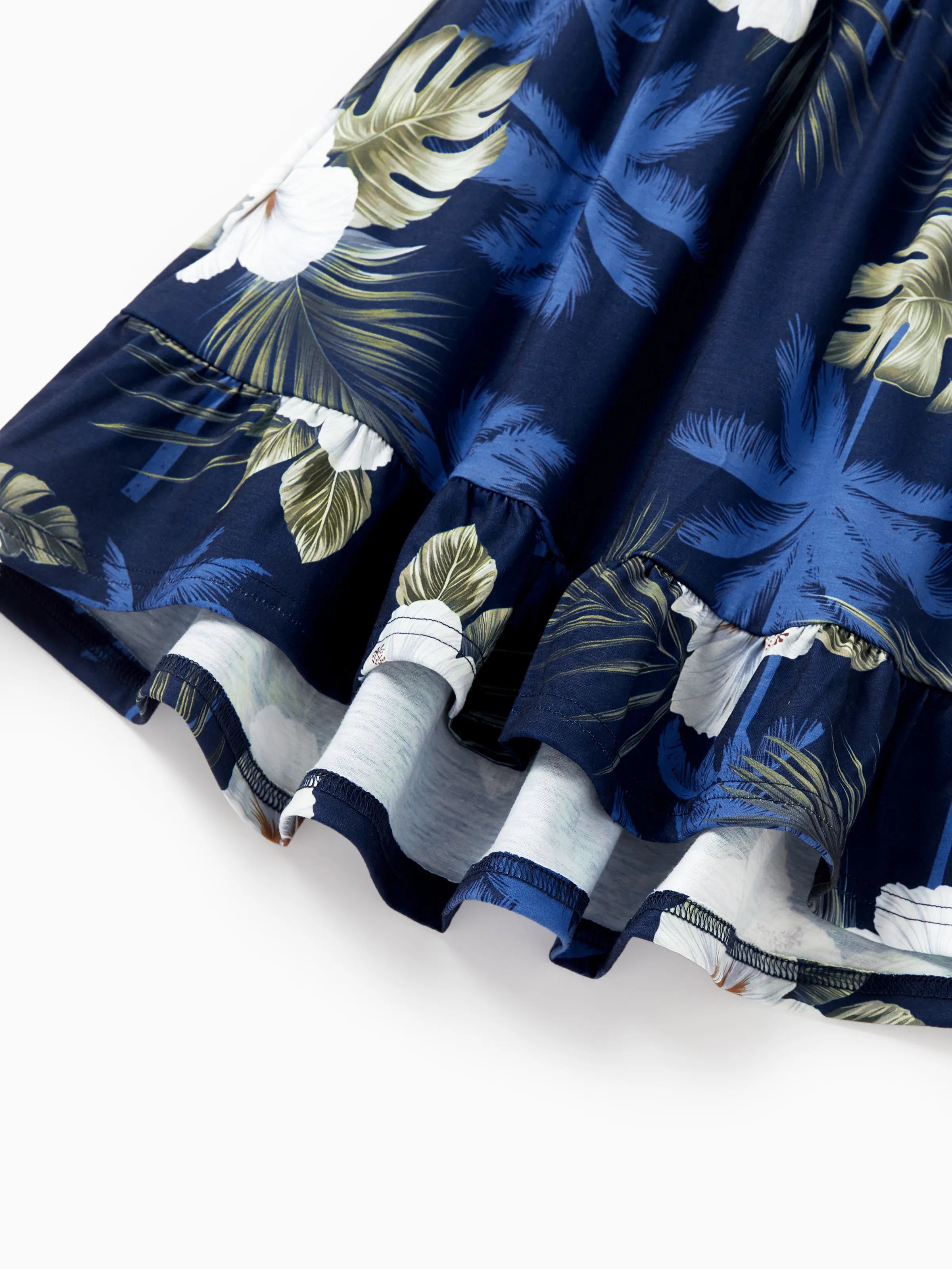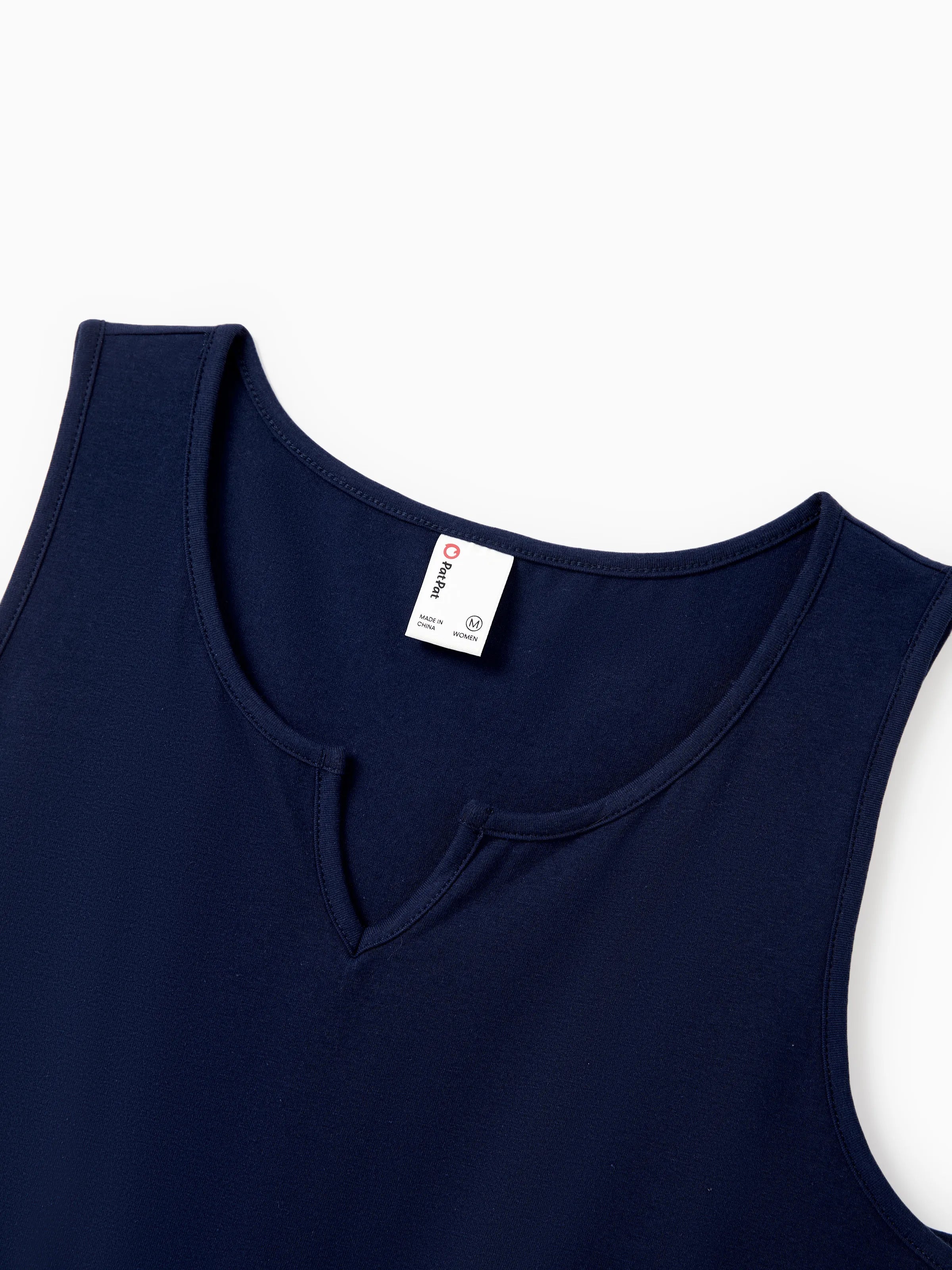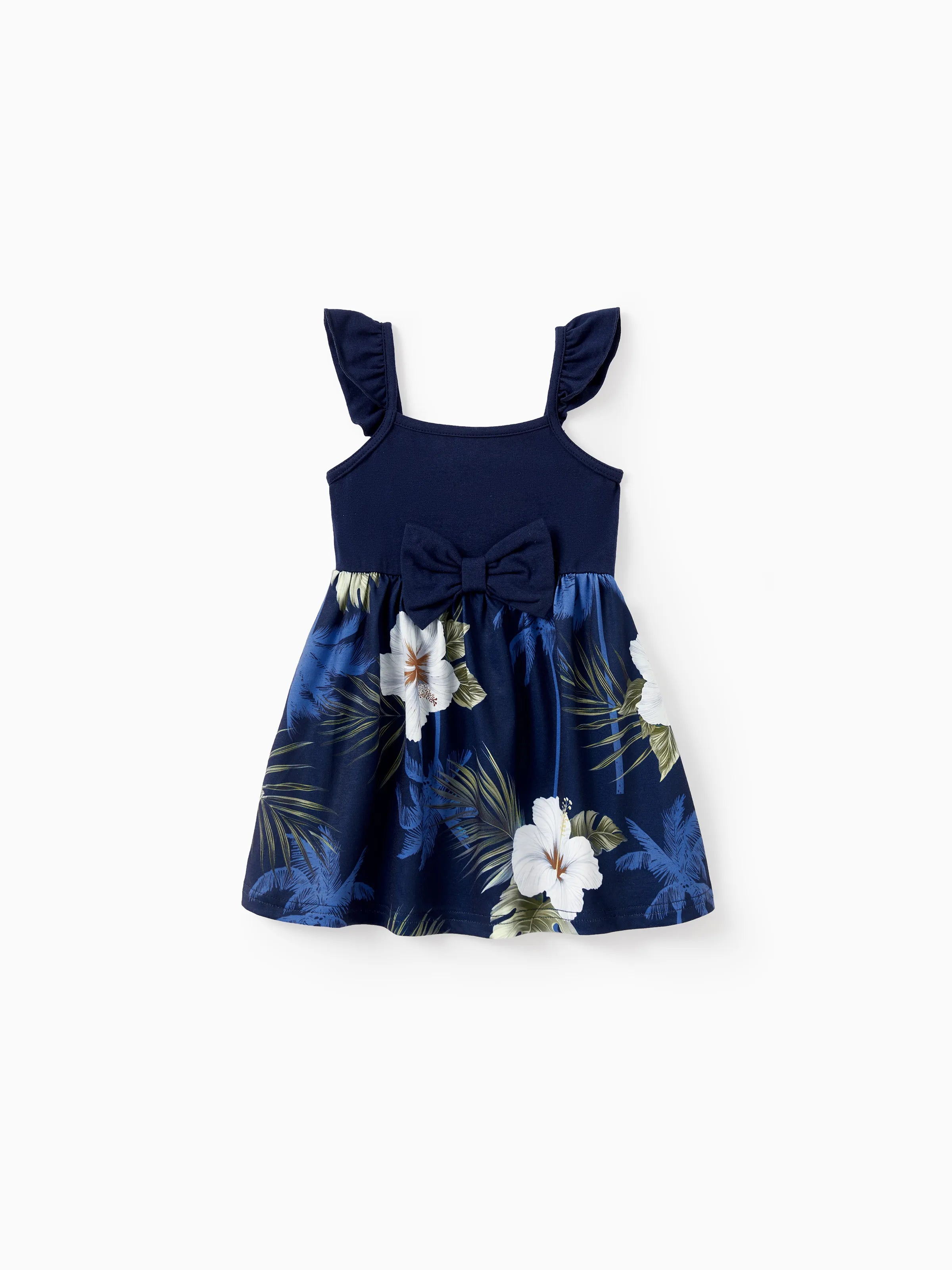 Mommy & me Floral Print Splicing Sleeveless Tank Dress Deep Blue