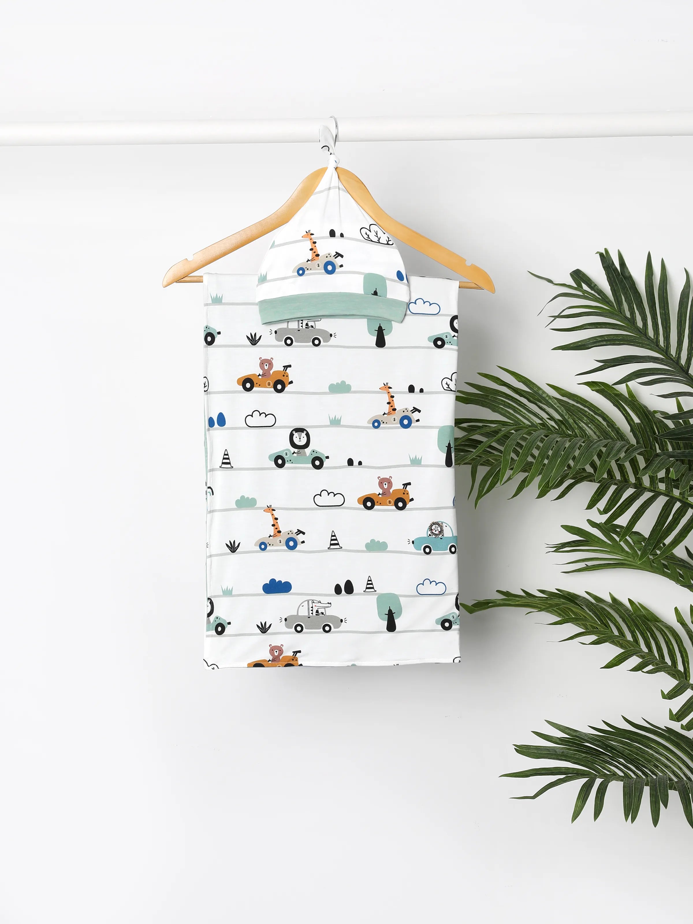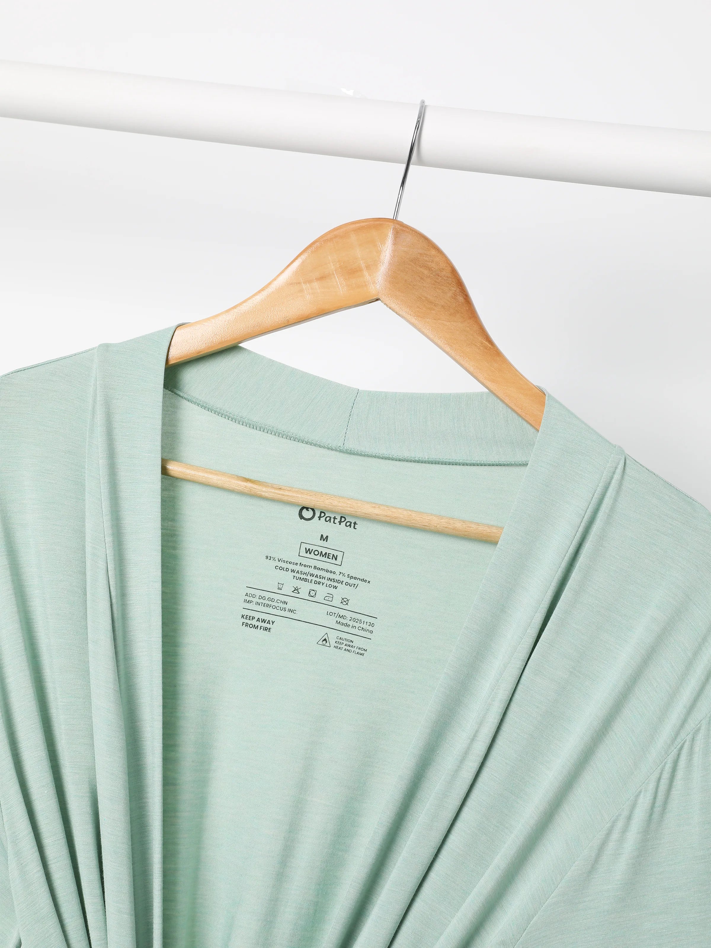 Newborn Bamboo Set for Mom & Baby Ultra Soft Bamboo Robe for Mom, Swaddle Blanket with Hat, Breathable & Gentle for Newborn Care Mint Green