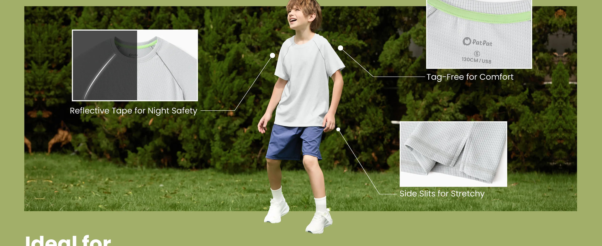 PatPat Lightflow Activewear Kid Boy Athletic Breathable Air-Grid Ultra Lightweight Short Sleeve T-Shirt White