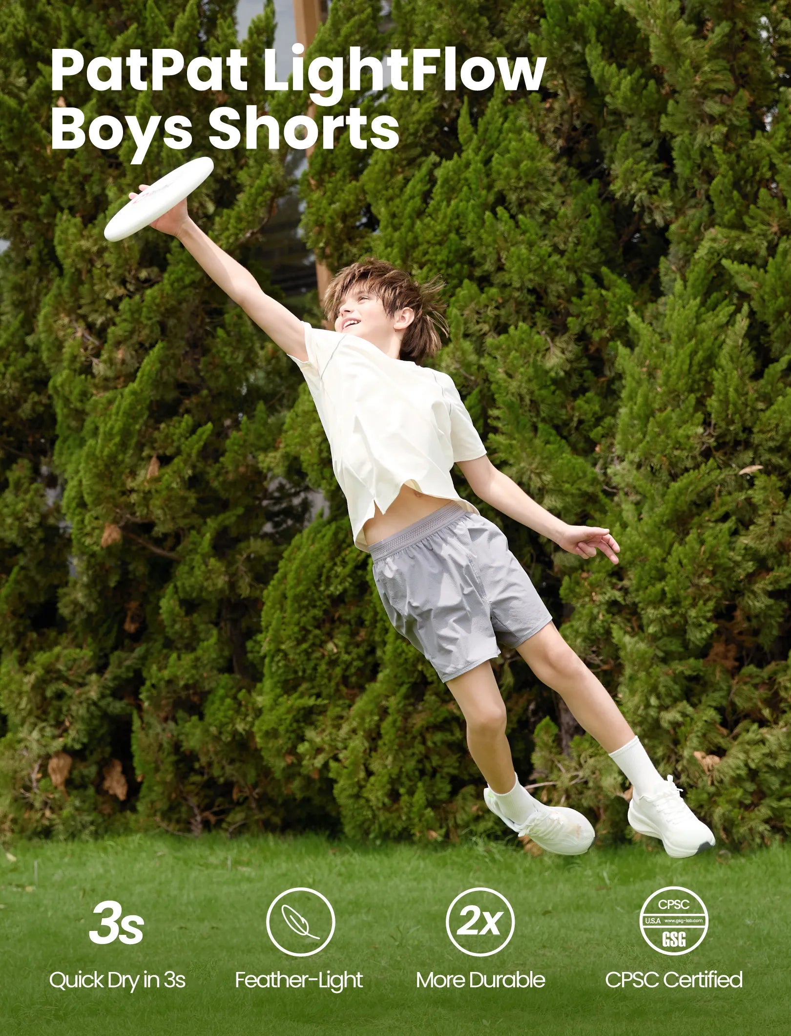PatPat Lightflow Activewear Kid Boy athletic ultra light quick dry shorts Grey