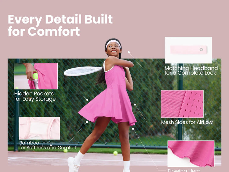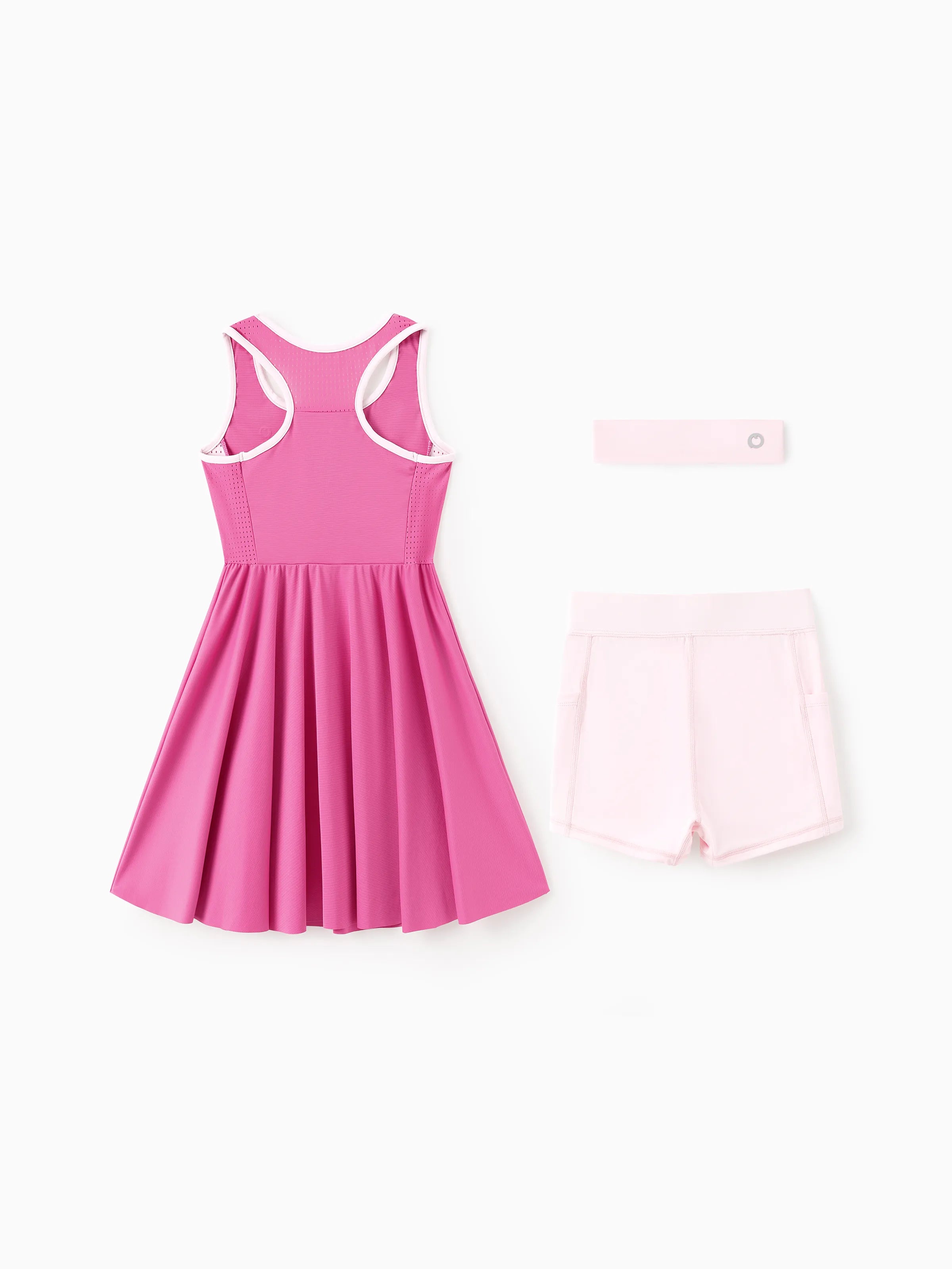 PatPat Rapidair activewear Kid Girl Tennis Dress with Headband & Bamboo Viscose Shorts with Pockets Hot Pink