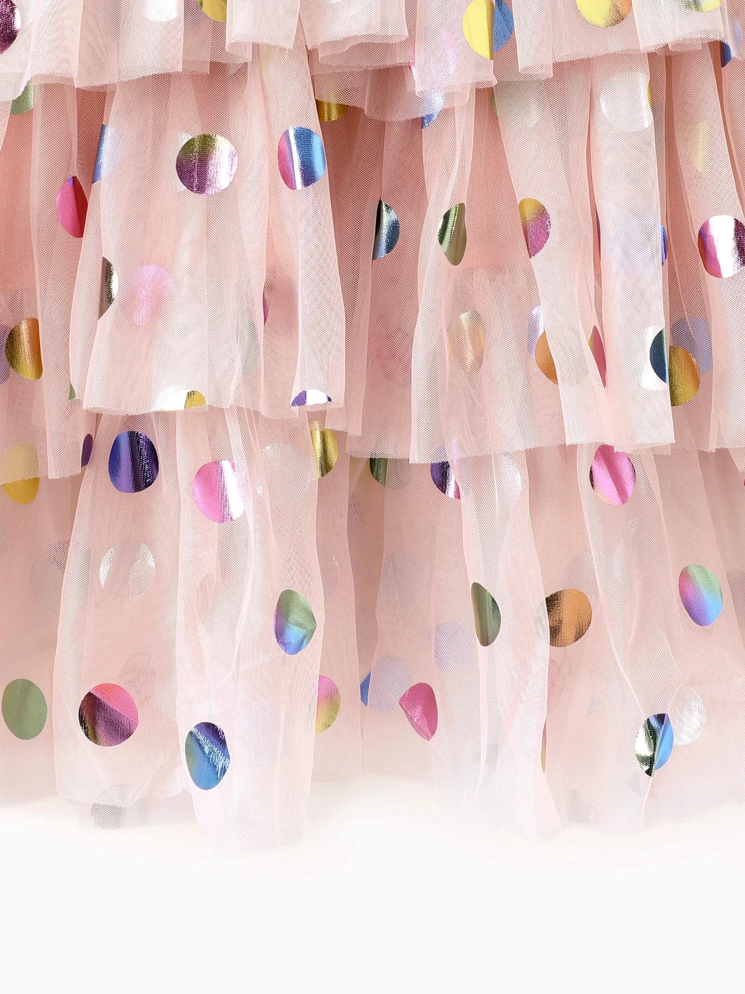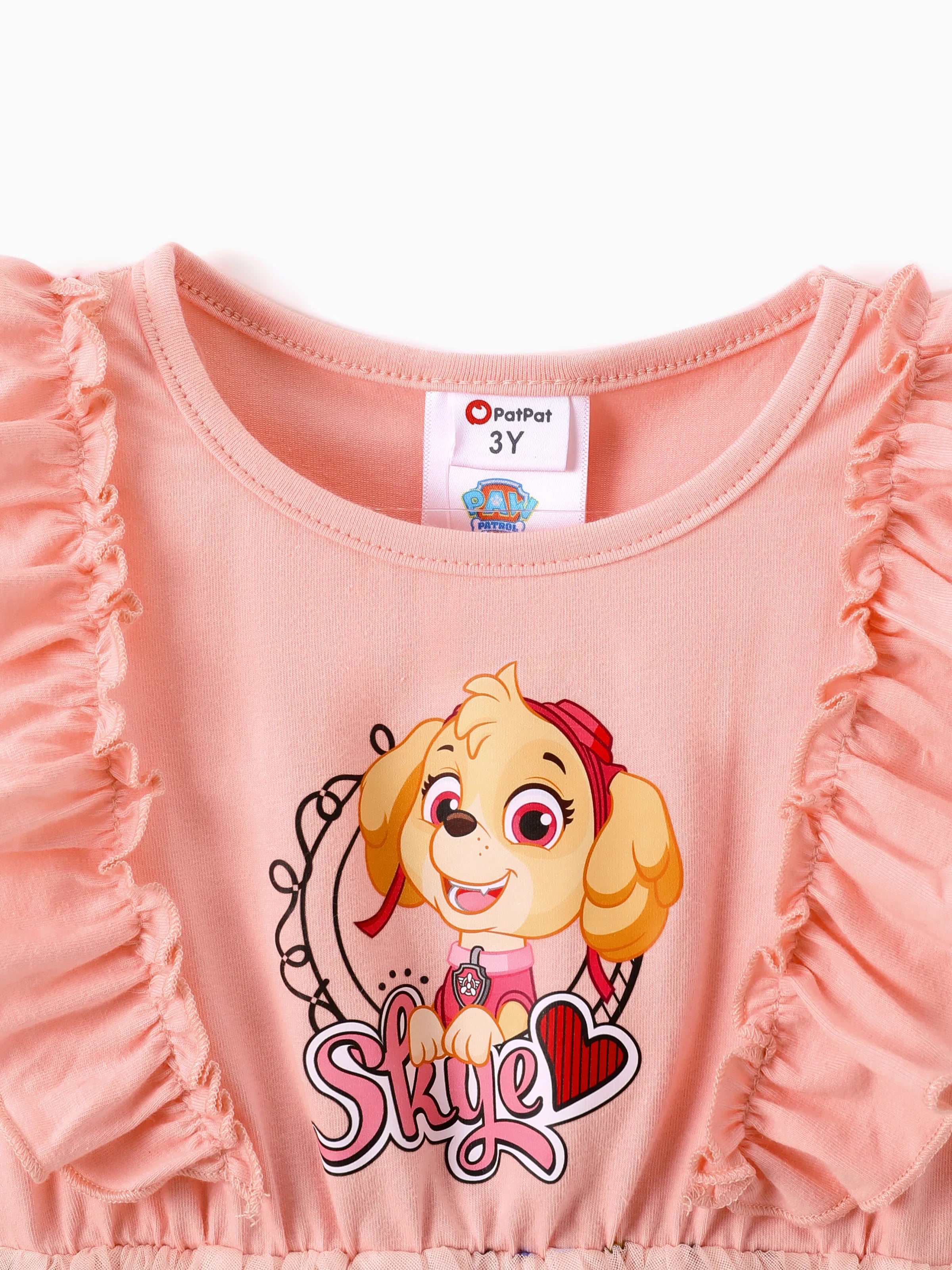 PAW Patrol Toddler Girl Skye Ruffled Polka dots Layered Mesh SpliceDress Pink