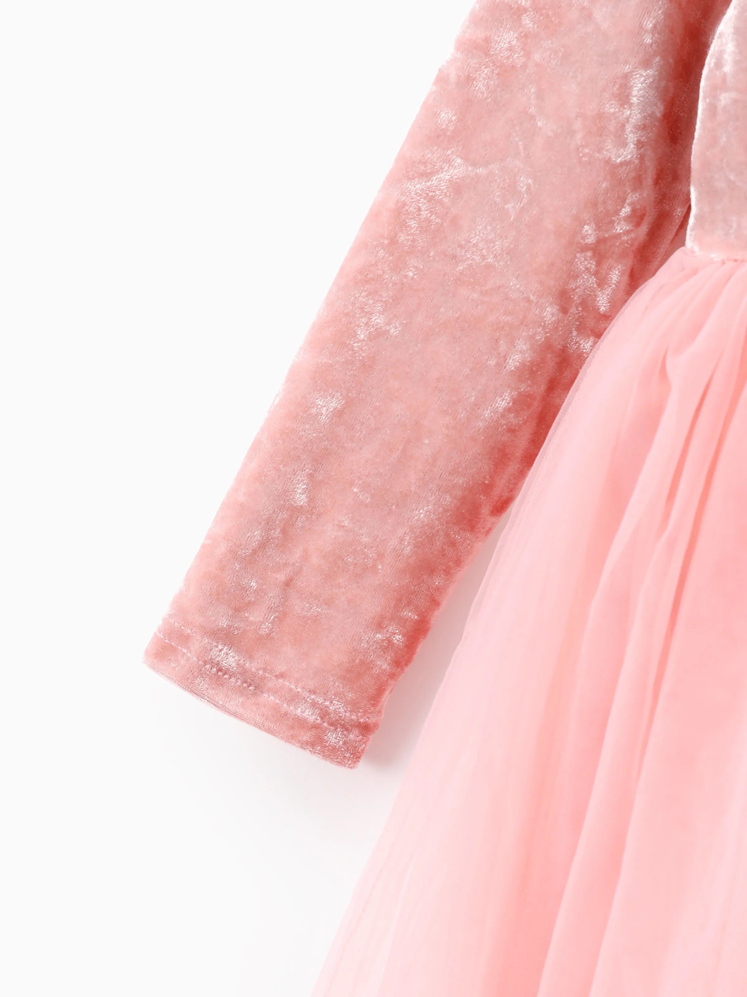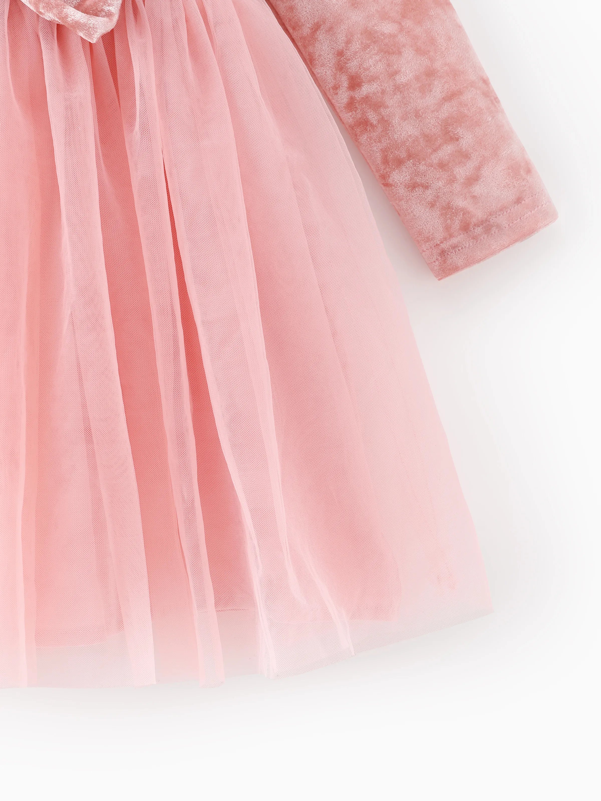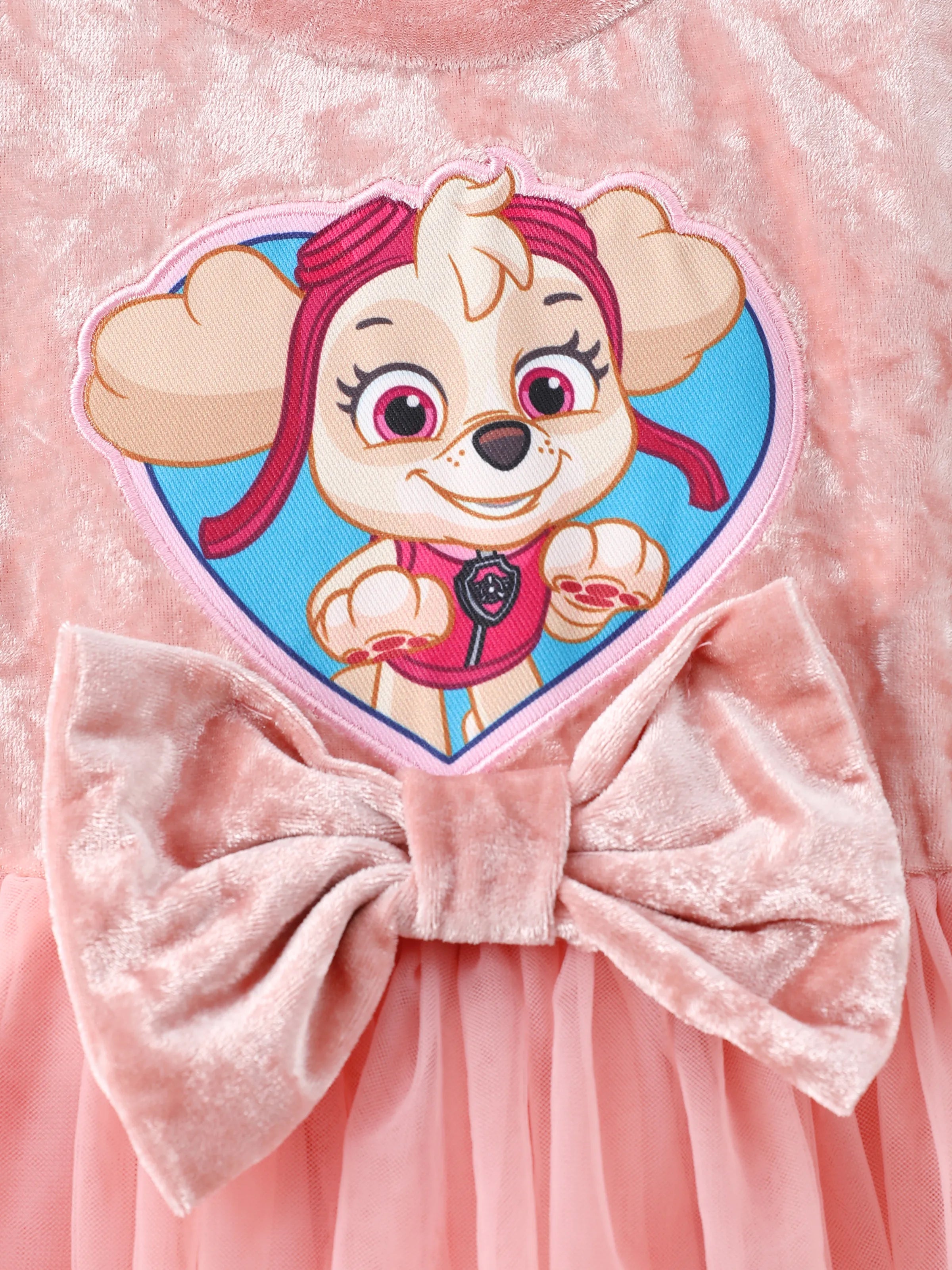 PAW Patrol Toddler Girl Skye Bowknot Velour Tulle Long-sleeve Dress Pink