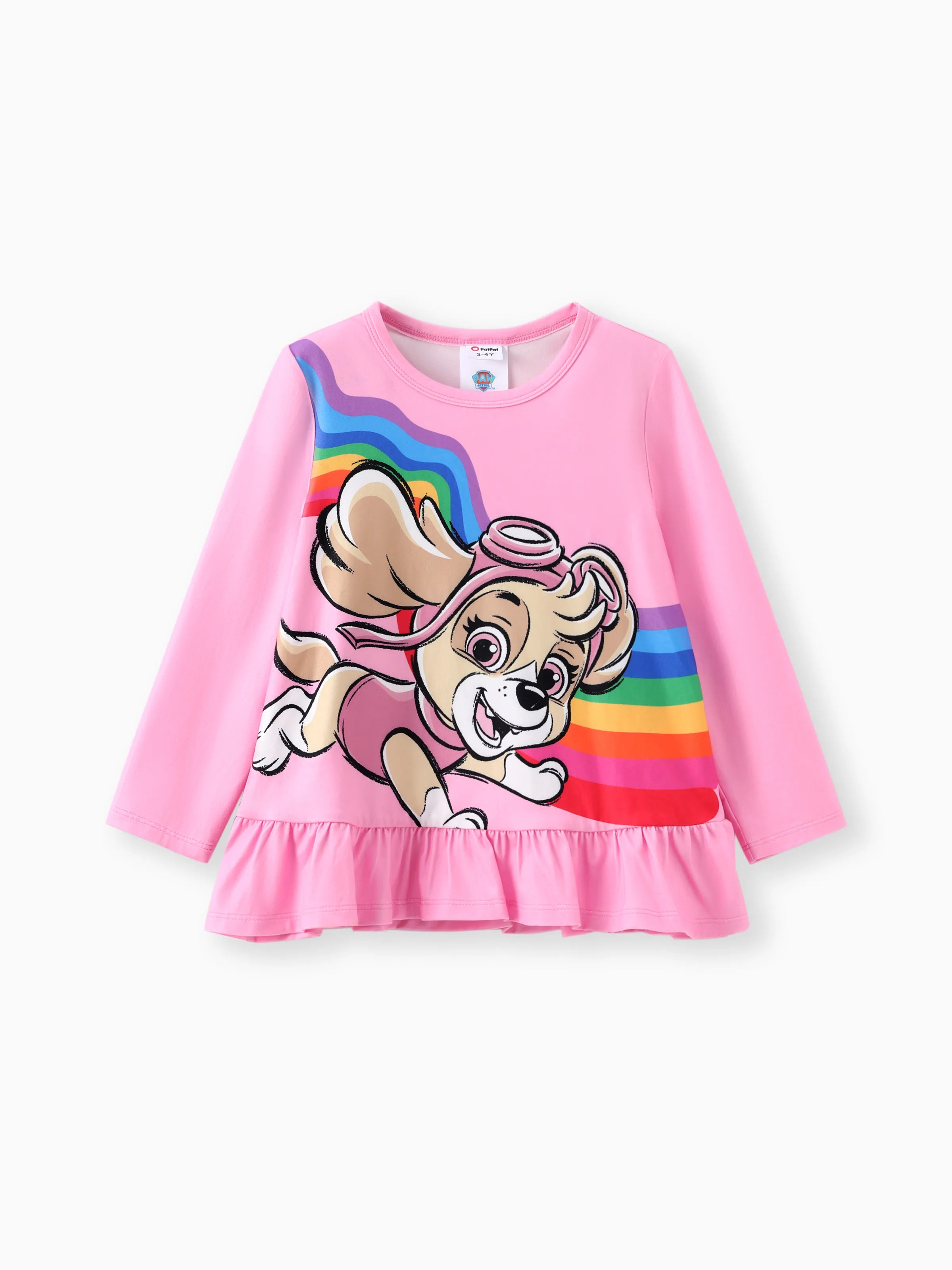 PAW Patrol Toddler Girl 2pcs Skye Rainbow/Gradient Ruffled Top with Leggings Set Pink