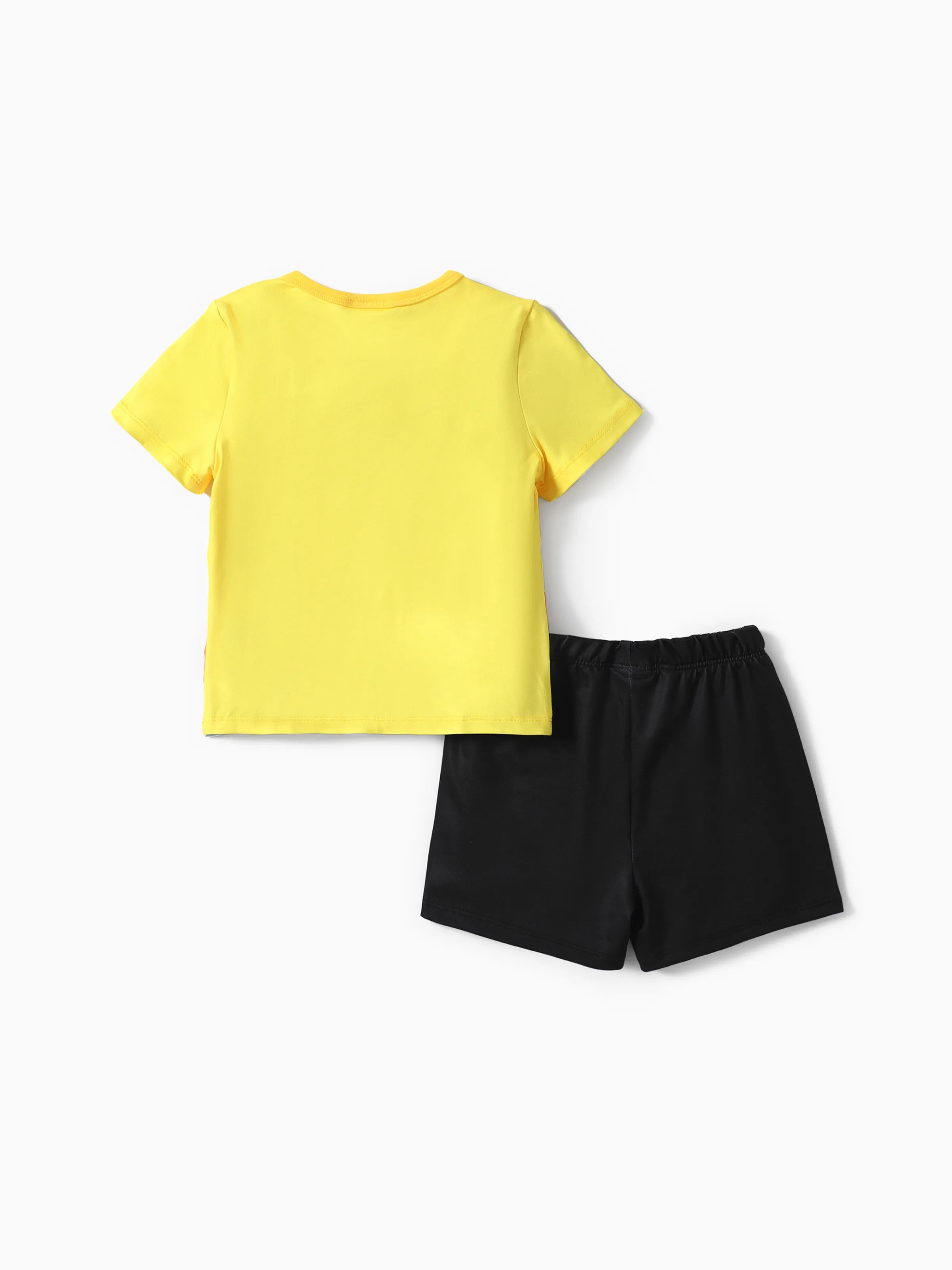 PAW Patrol Toddler Boy Rubble 2pcs Rainbow Print T-shirt with Shorts Sporty Set Yellow