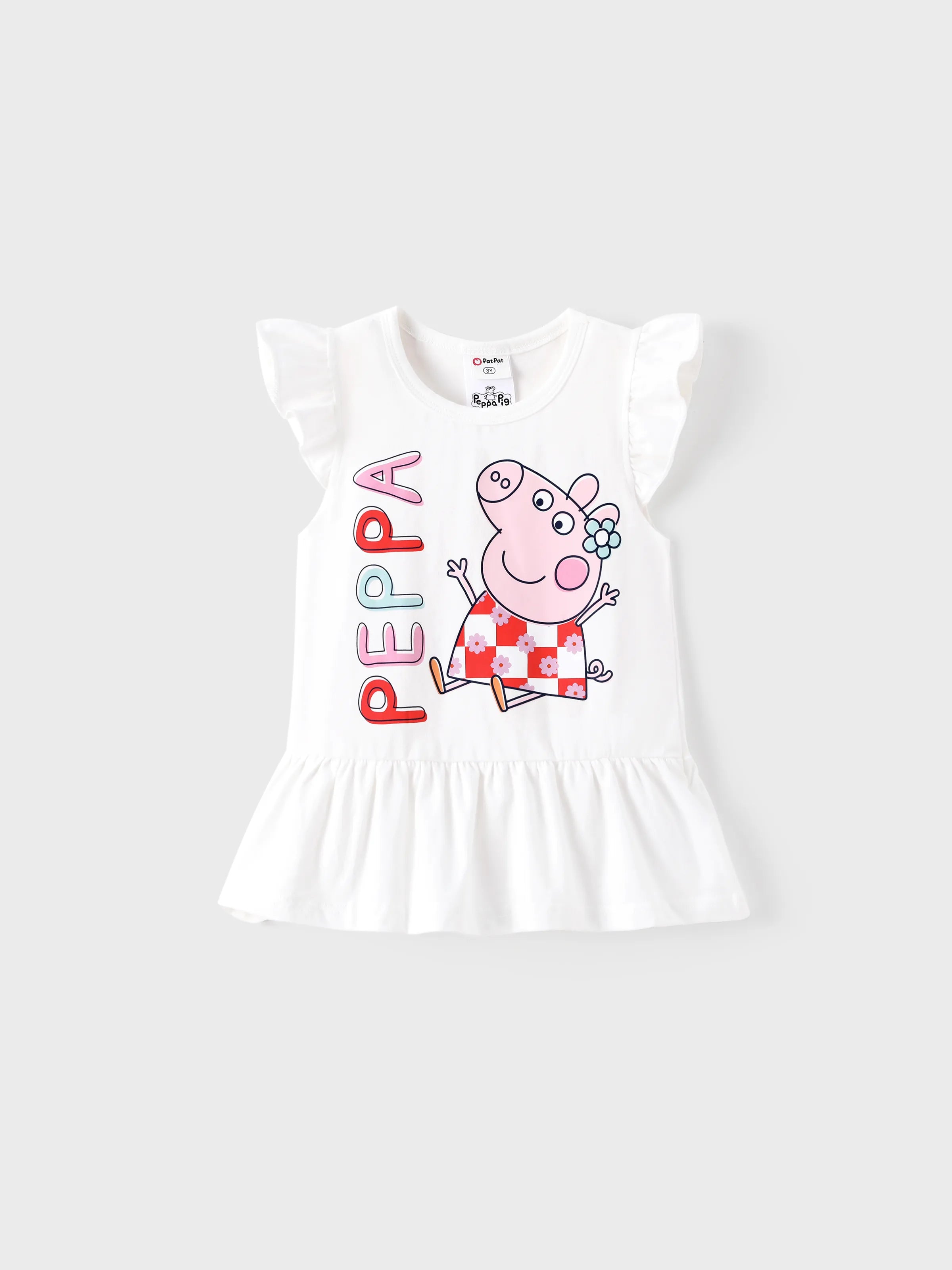 Peppa Pig Toddler Girl 2pcs Cotton Ruffle-sleeve Top and Naia™ Floral Plaid Leggings Set White