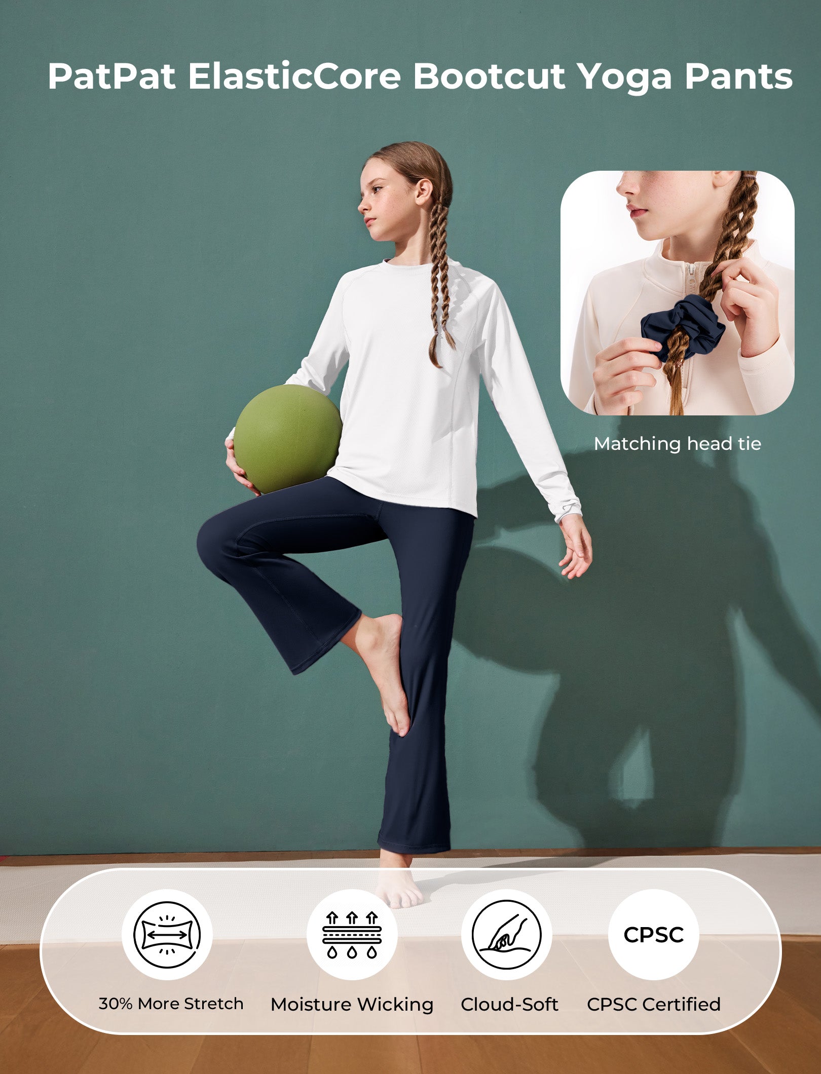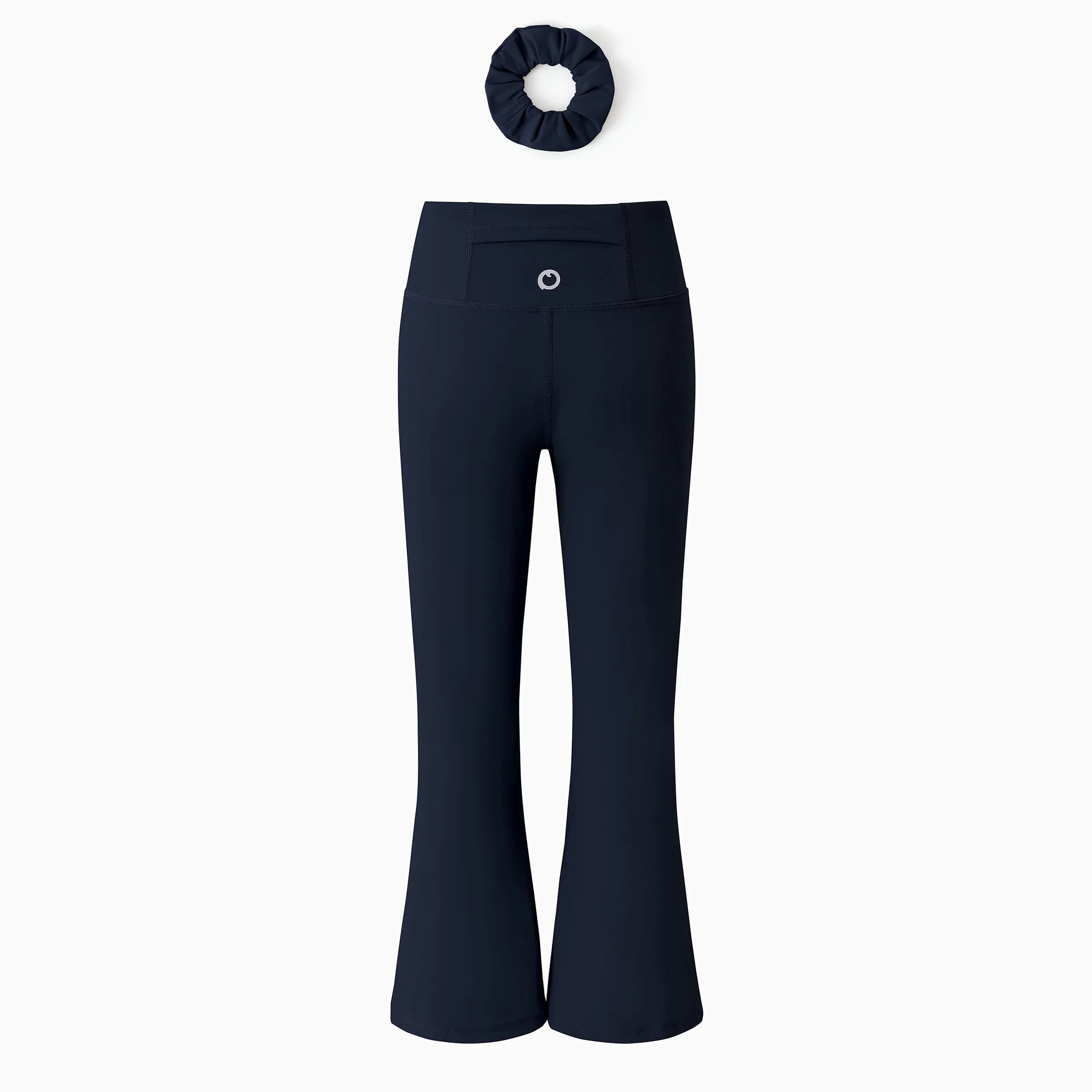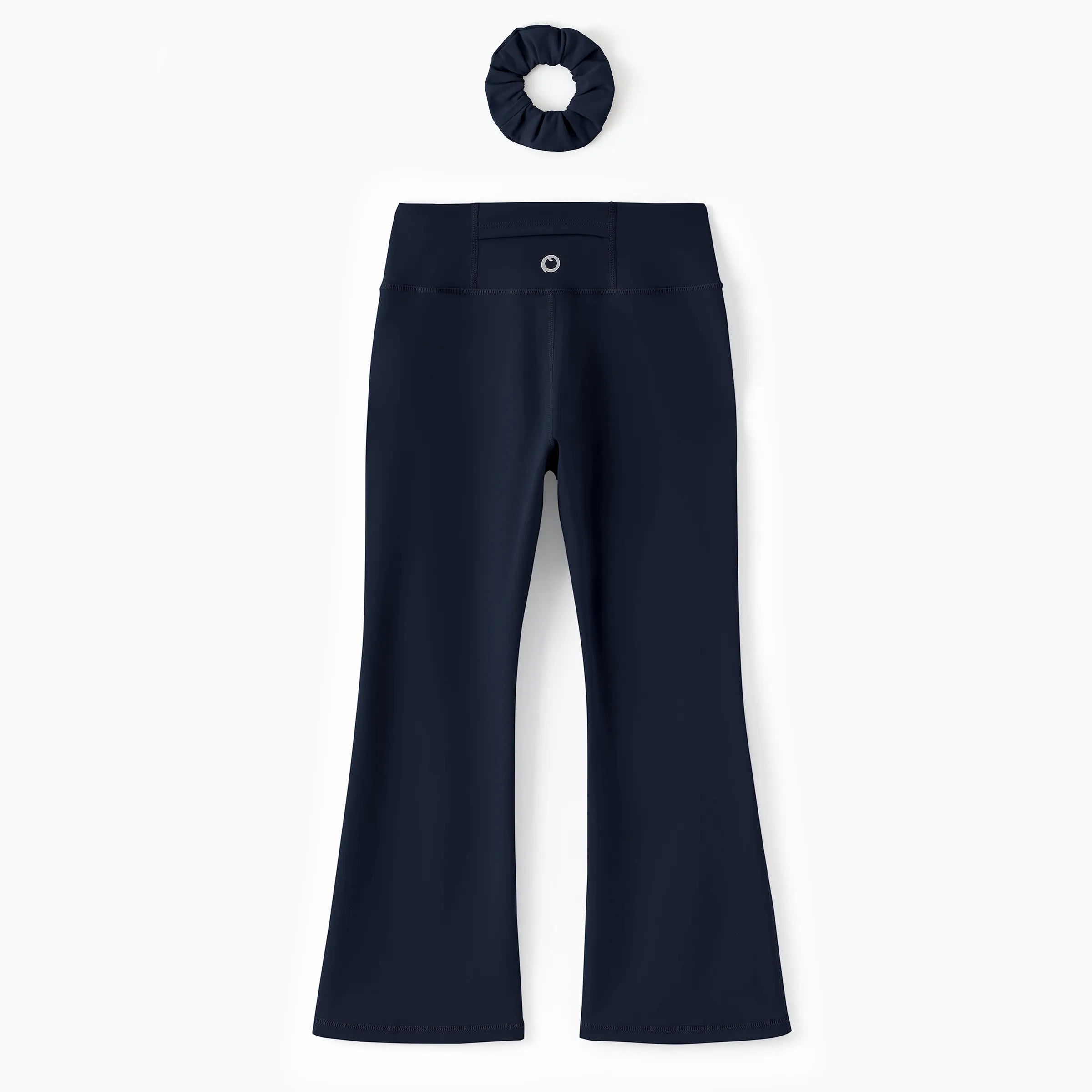 Girl's Leggings High-Waist Flared Yoga Pants with Complimentary Matching Scrunchie Deep Blue