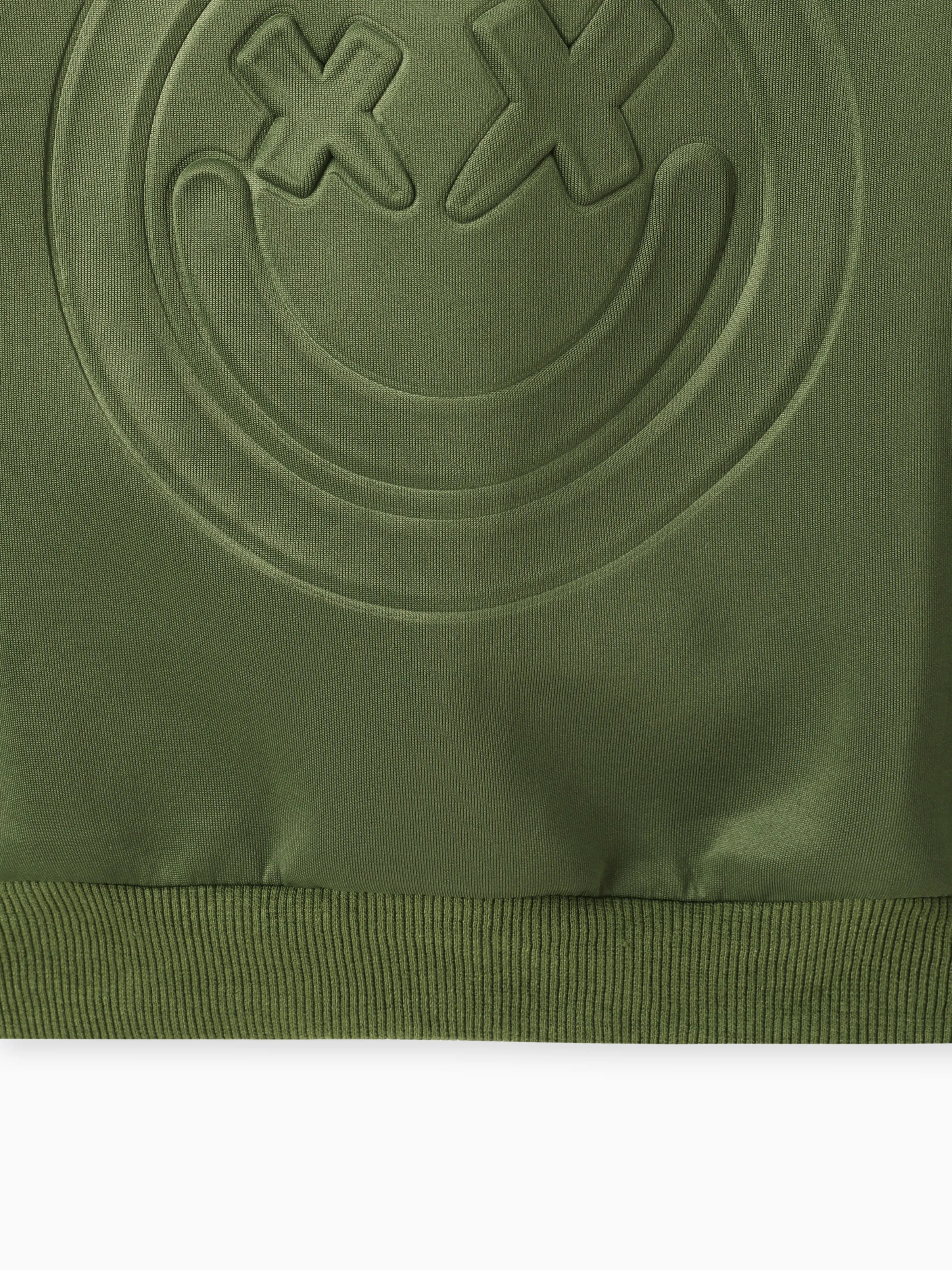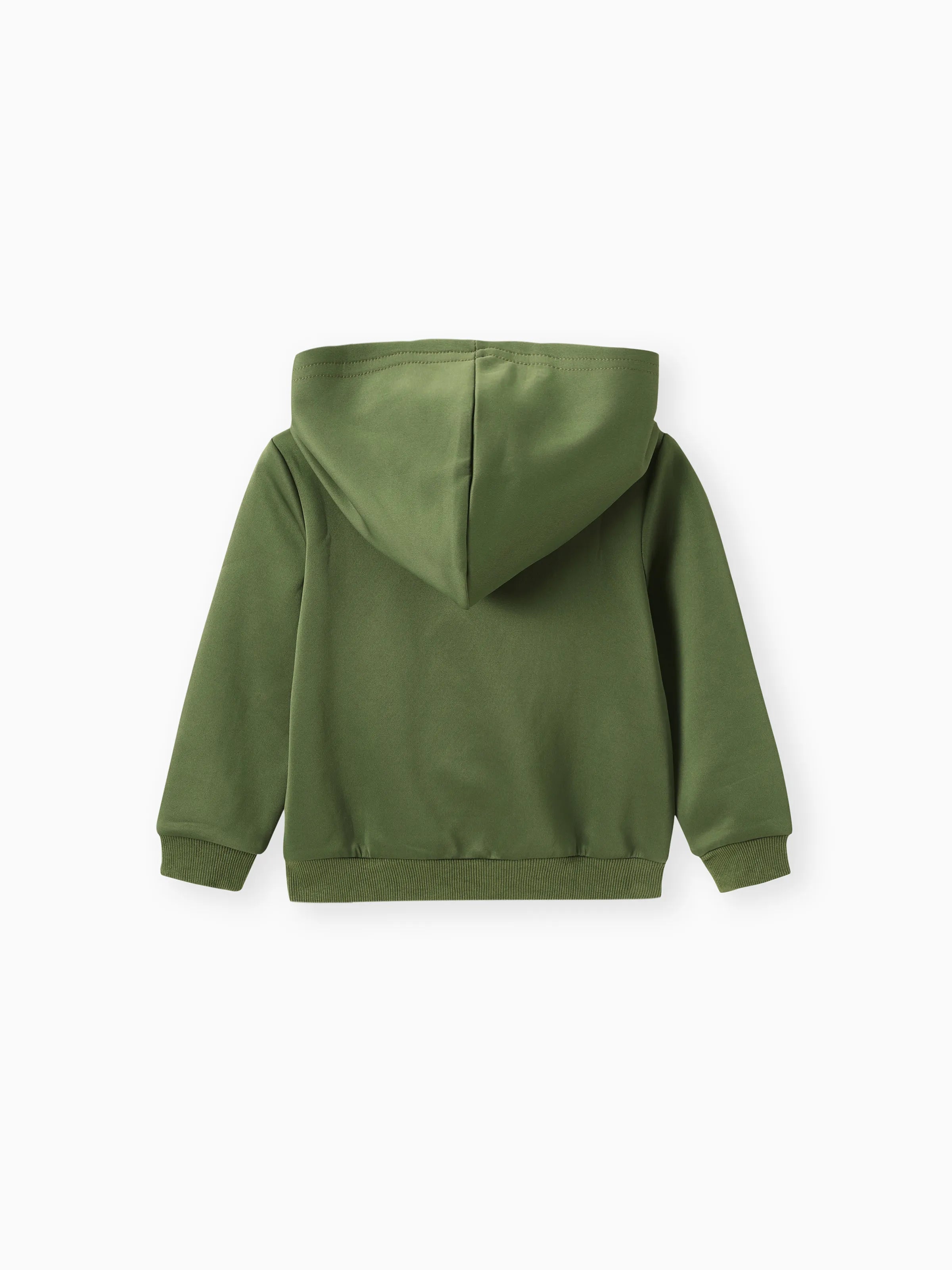 Toddler Boy Face Graphic Textured Solid Color Hoodie Sweatshirts Army green