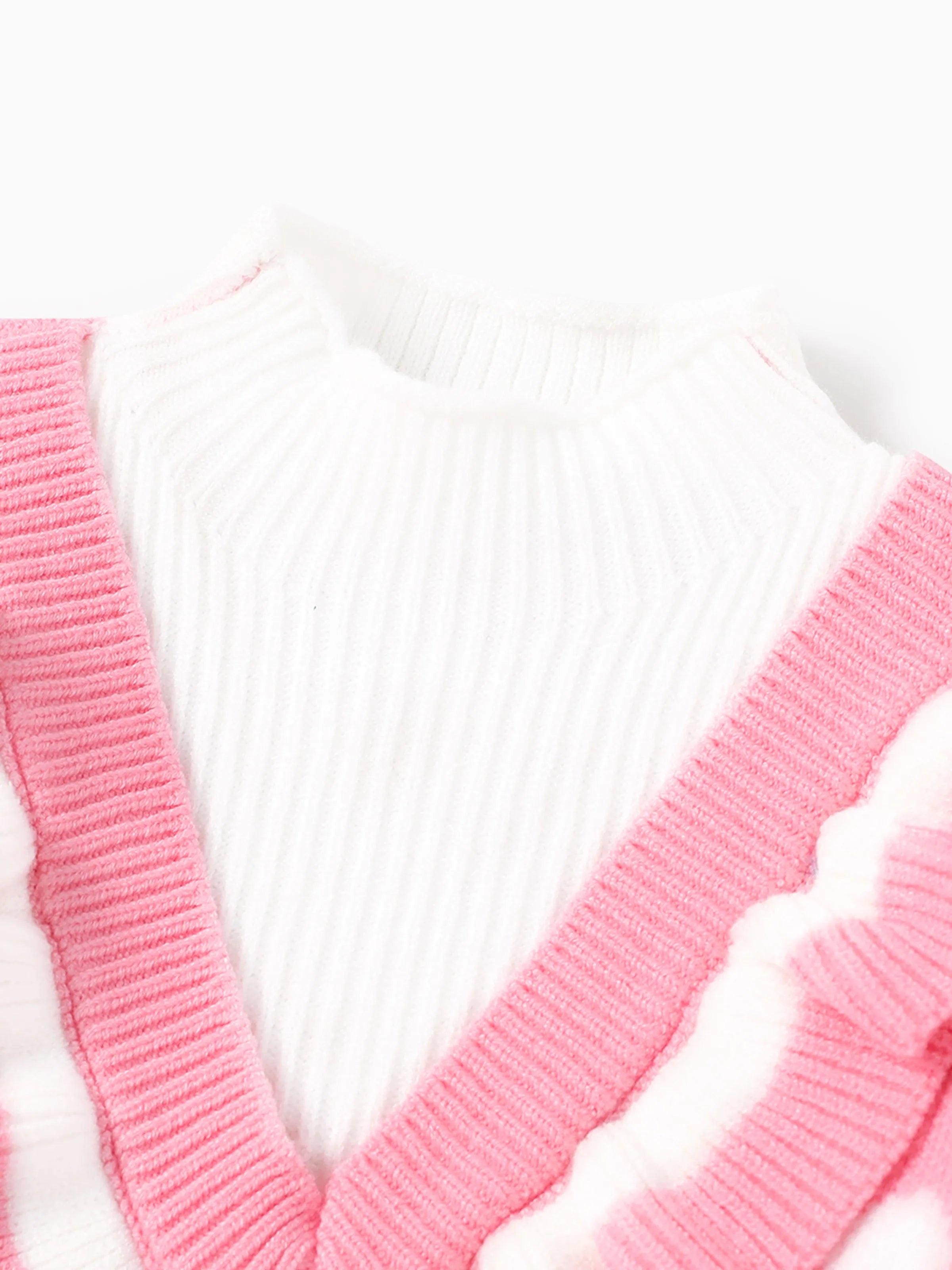Toddler Girl 2pcs Heart Print Sweater Skirt Set Pink
