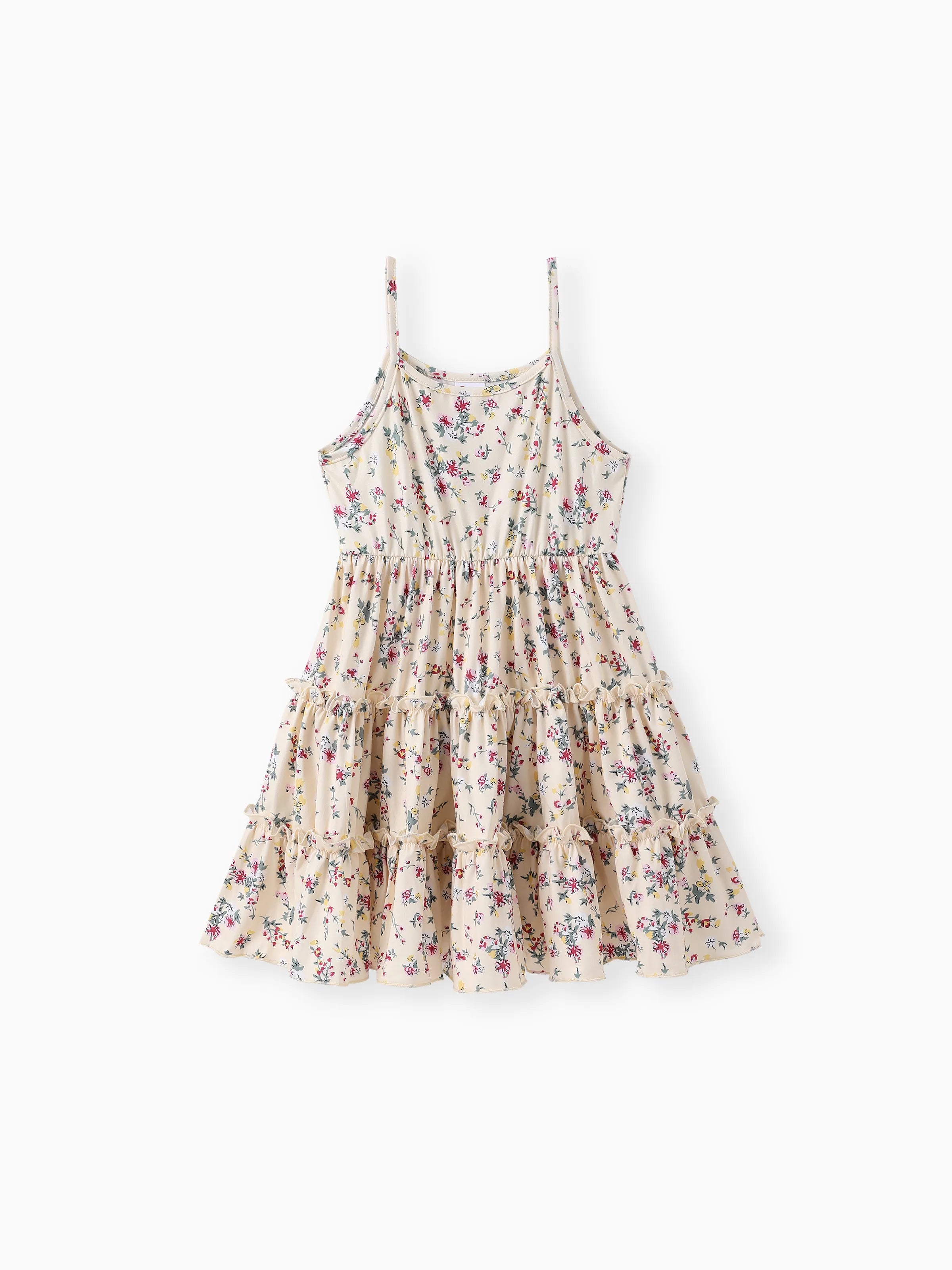 Toddler Girl 2pcs Lapel Collar Jacket and Floral Ruffled Dress Set Khaki