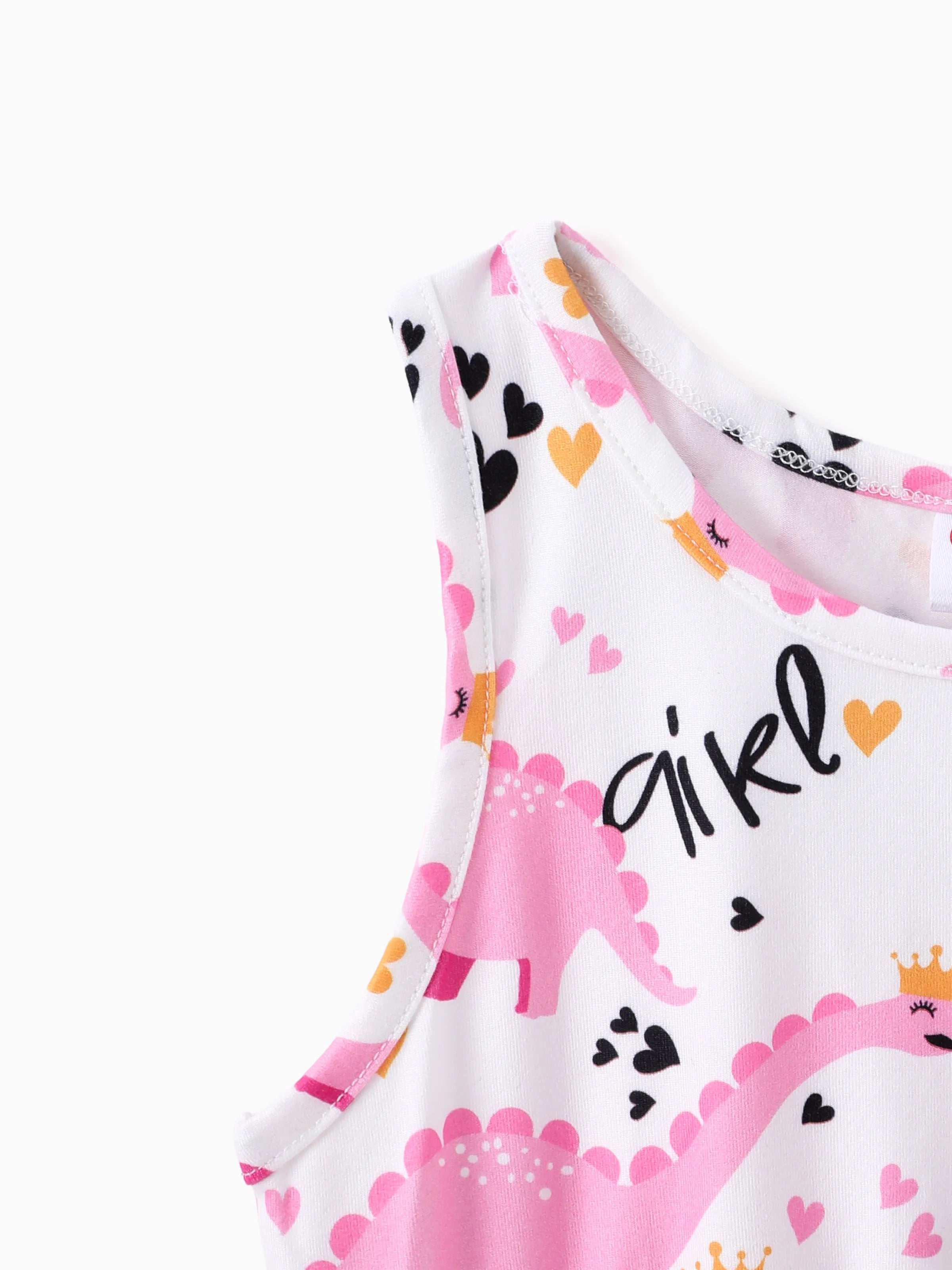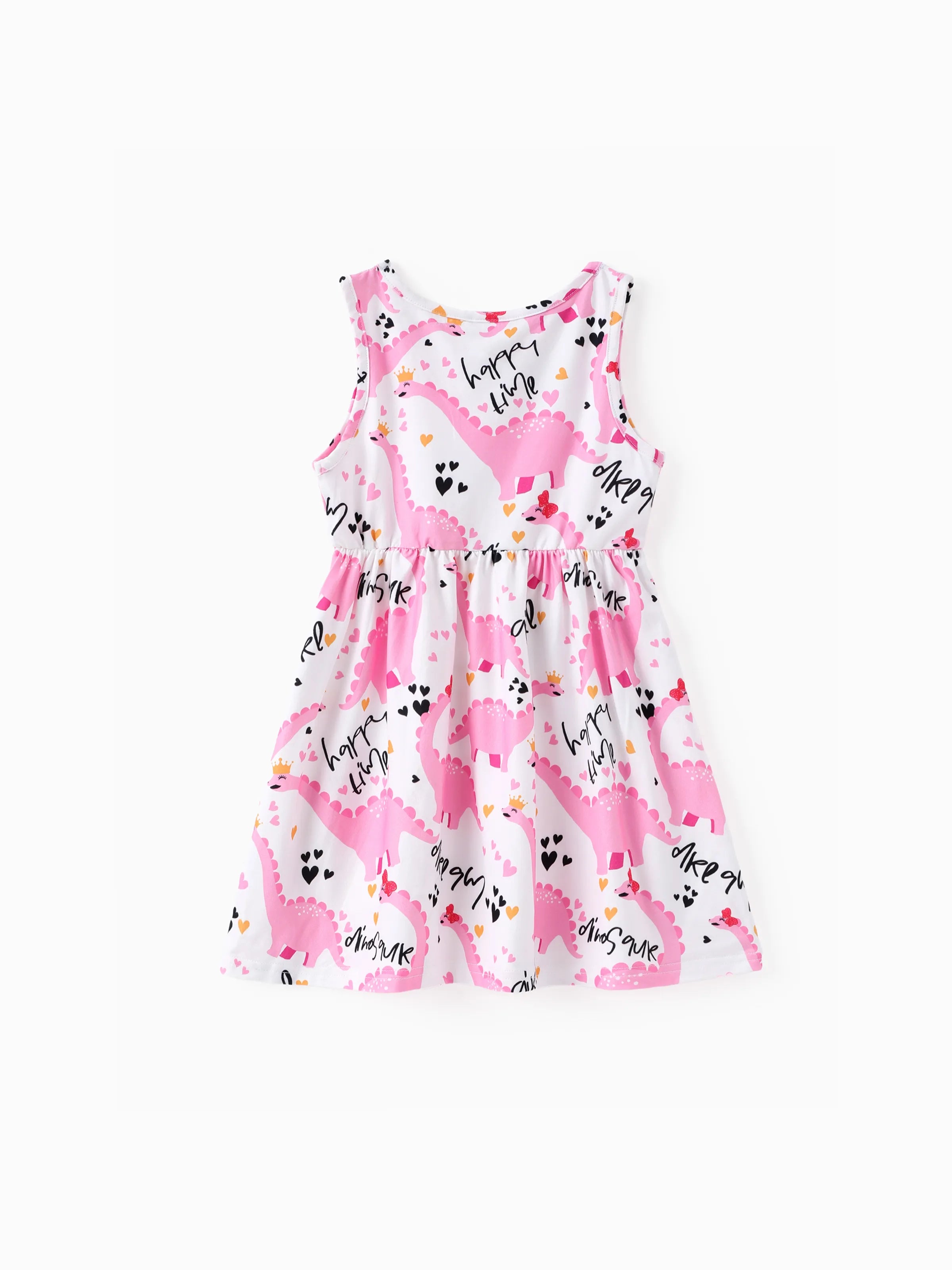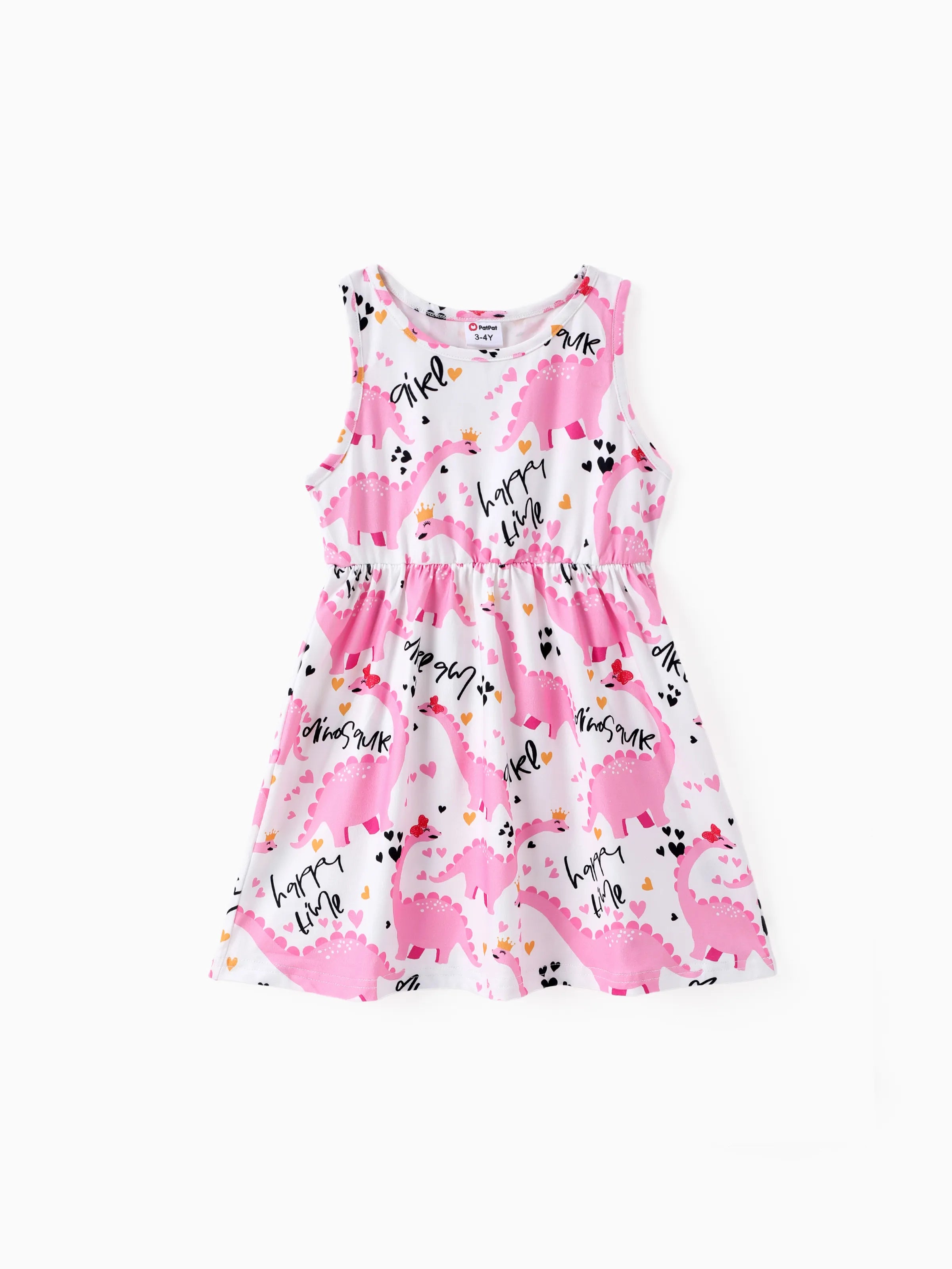 Toddler Girl Animal Dinosaur Print Sleeveless Dress Pink