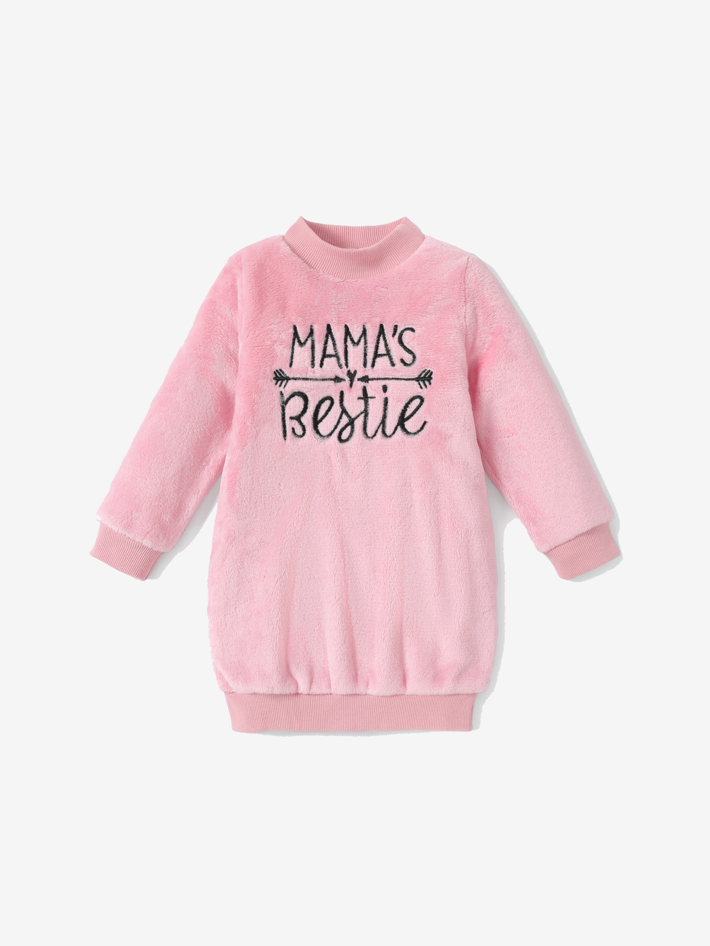 Toddler Girl Letter Embroidered Fleece Mock Neck Long-sleeve Pink Sweatshirt Dress Pink