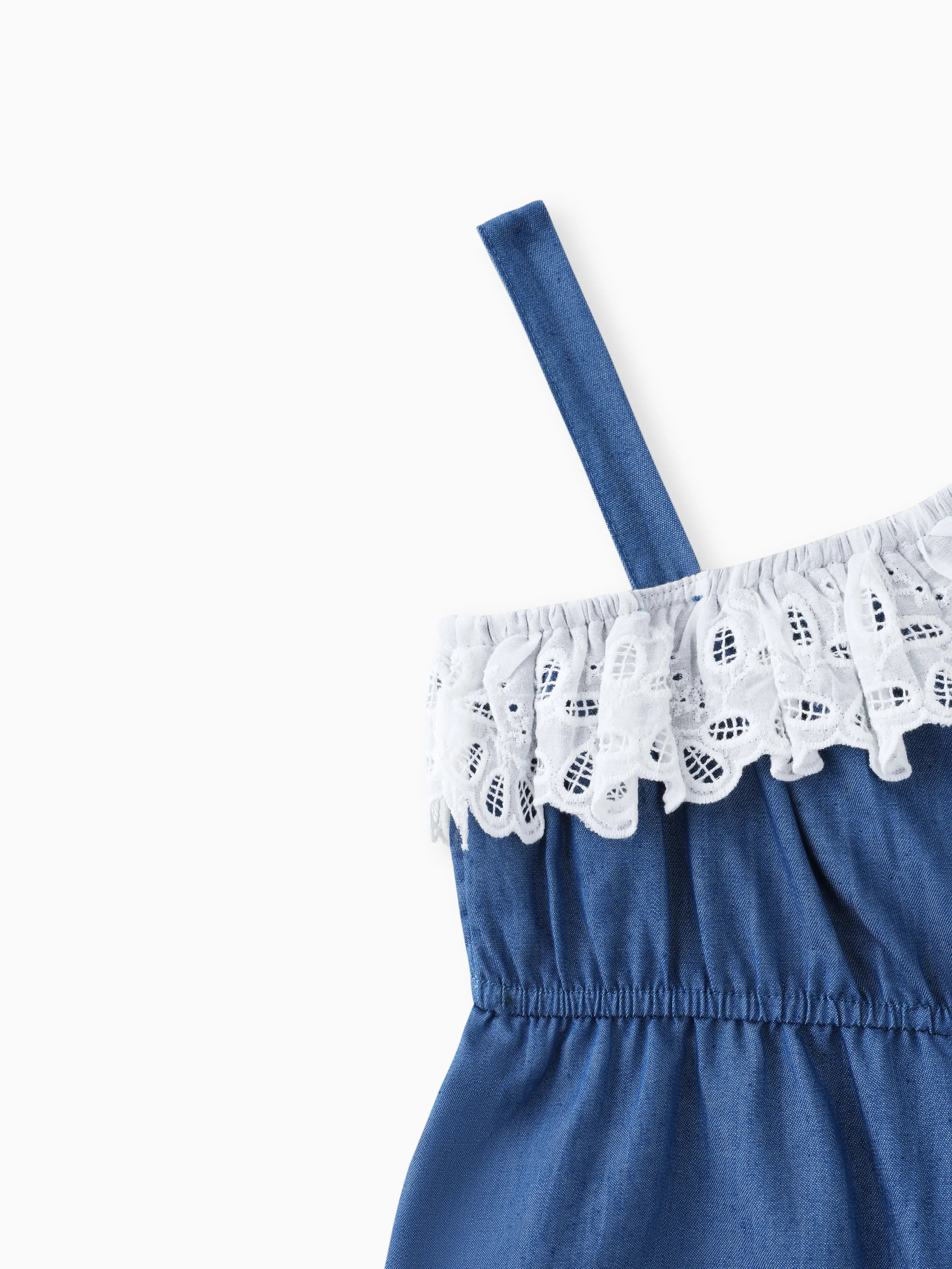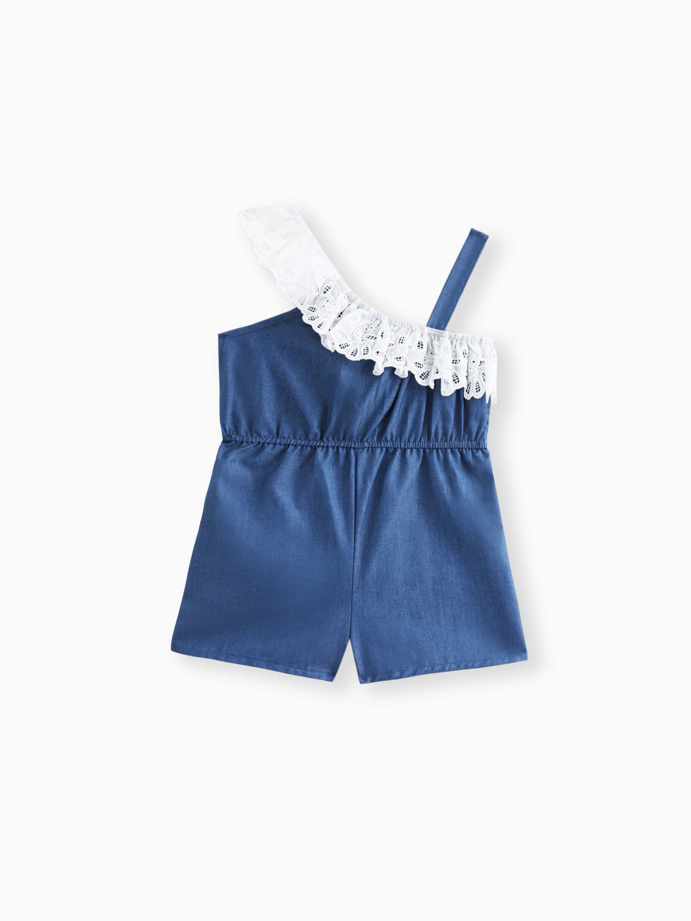 Toddler Girl Schiffy Design Sleeveless Denim Romper Jumpsuit Shorts DENIMBLUE