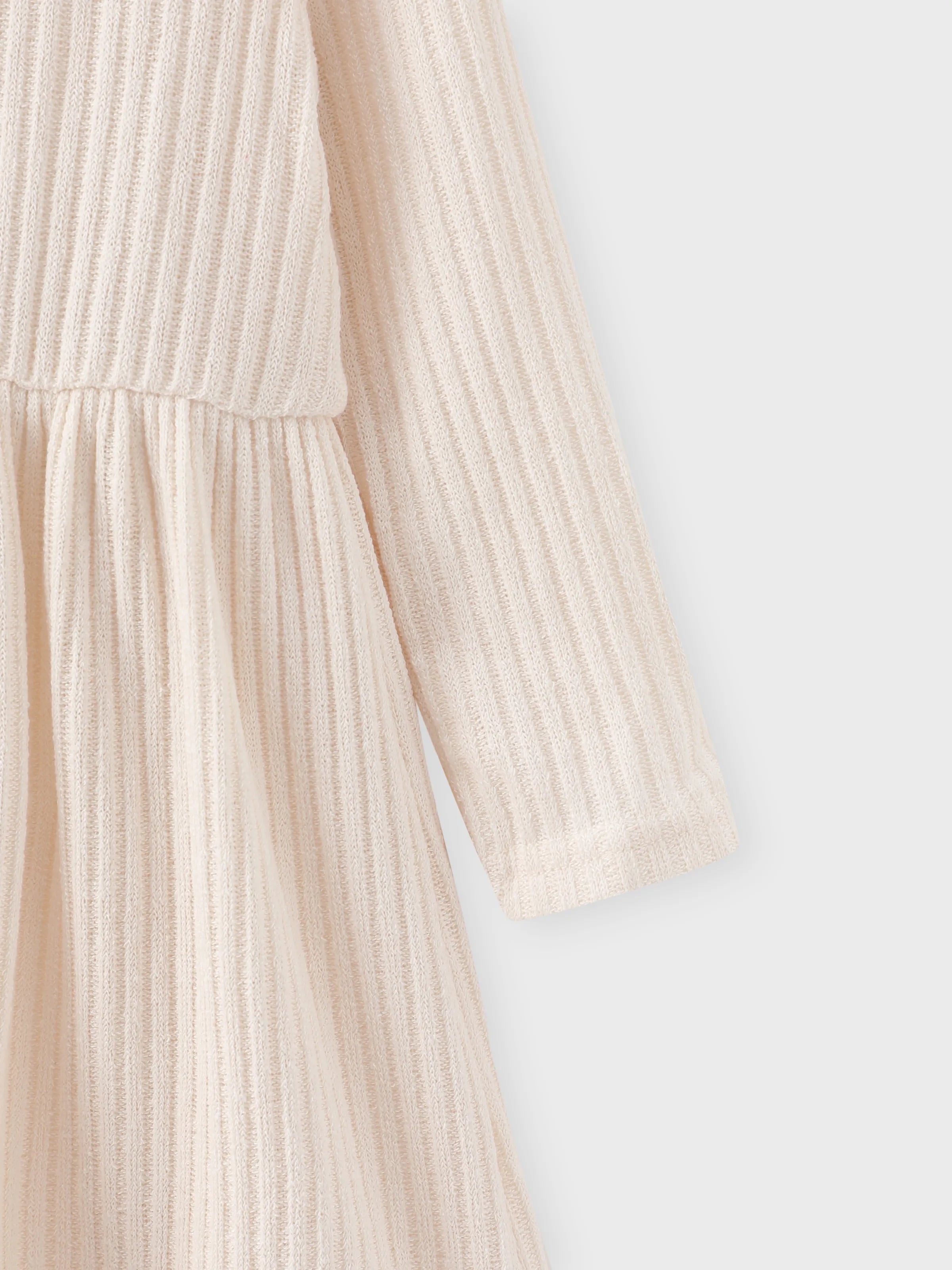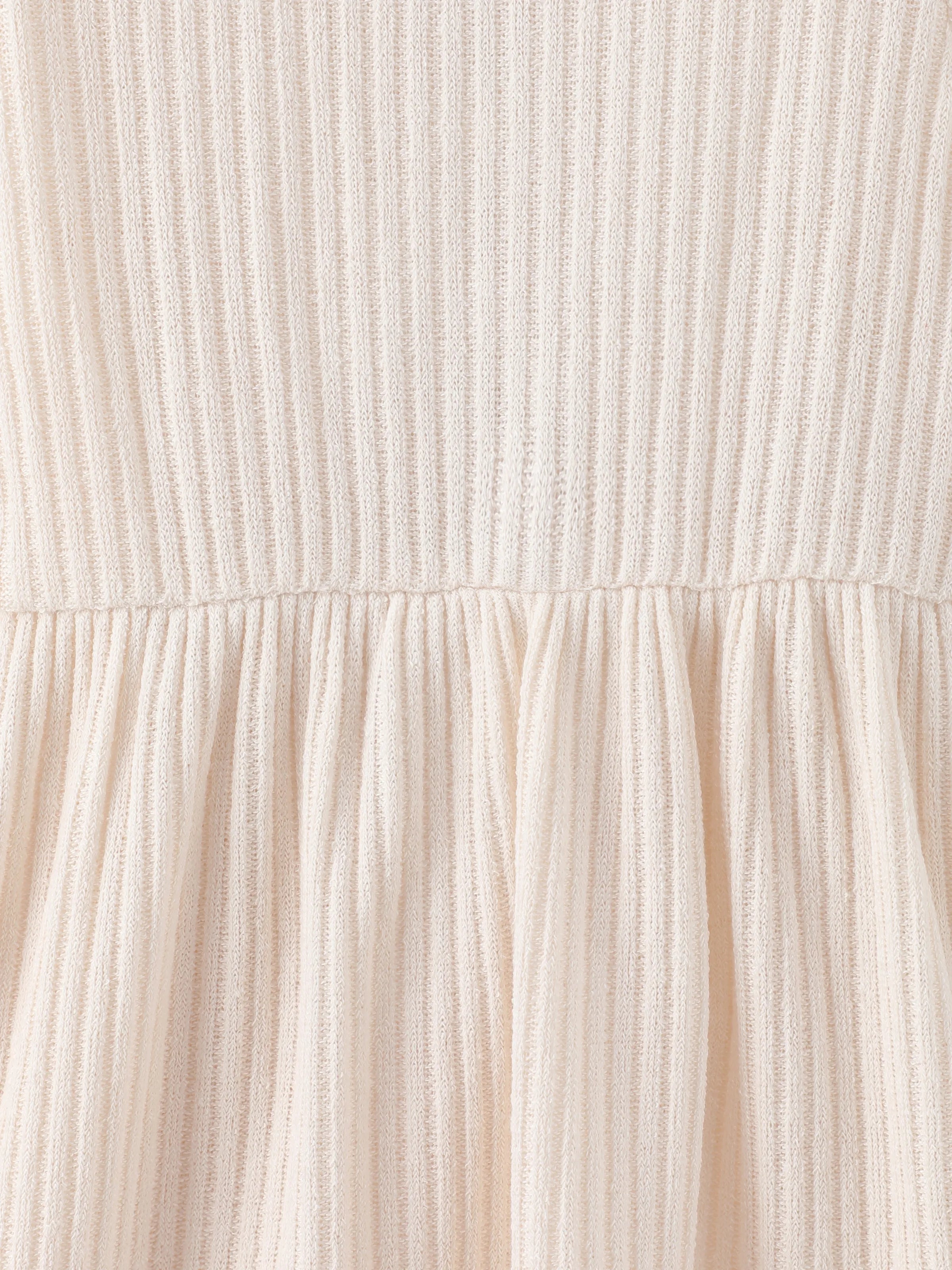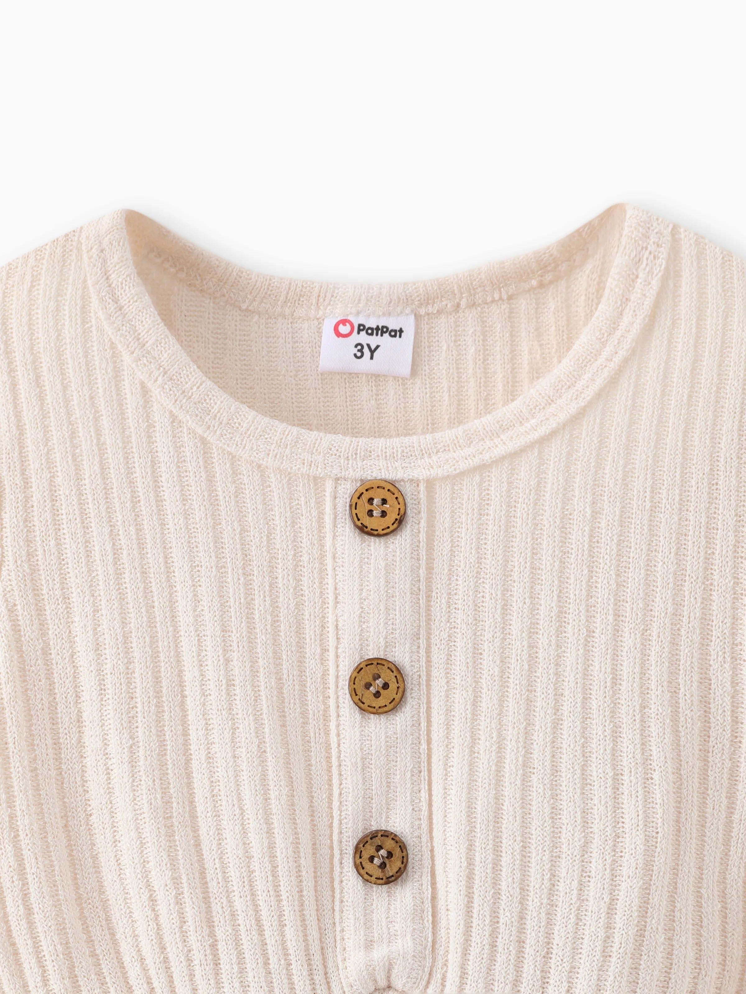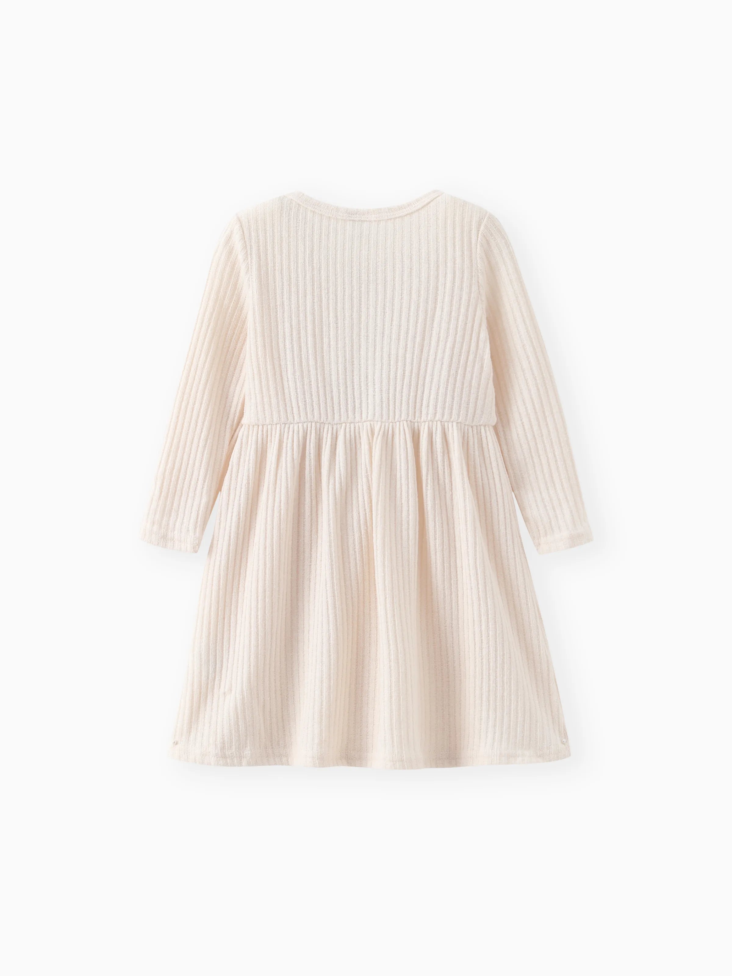 Toddler Girl Solid Color Button Design Ribbed Long-sleeve Dress Apricot