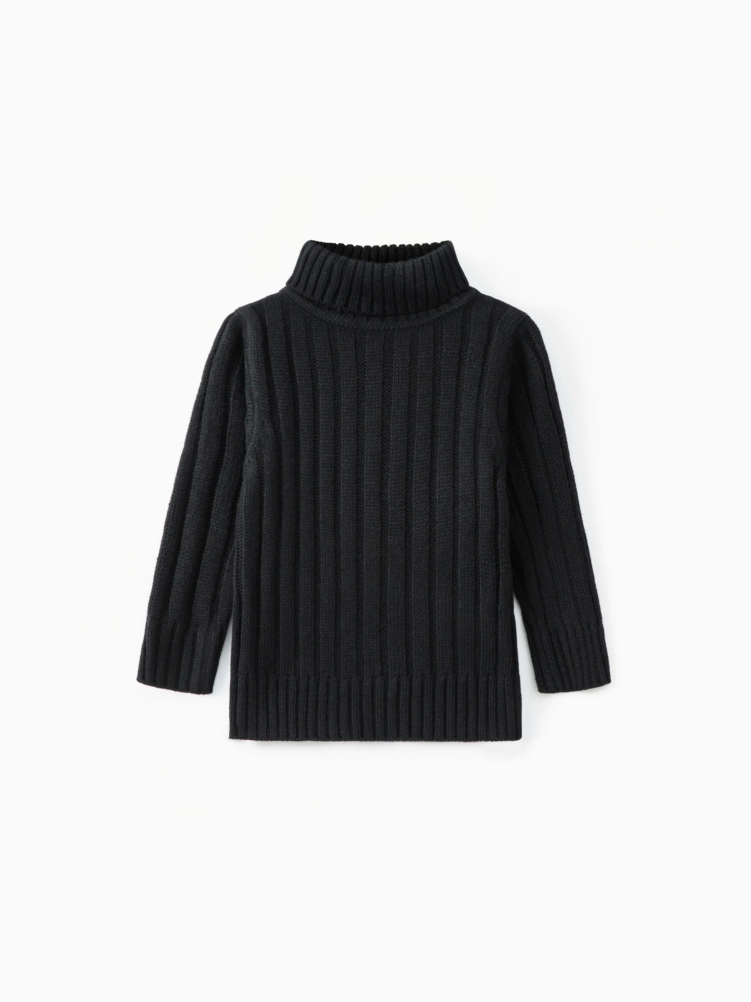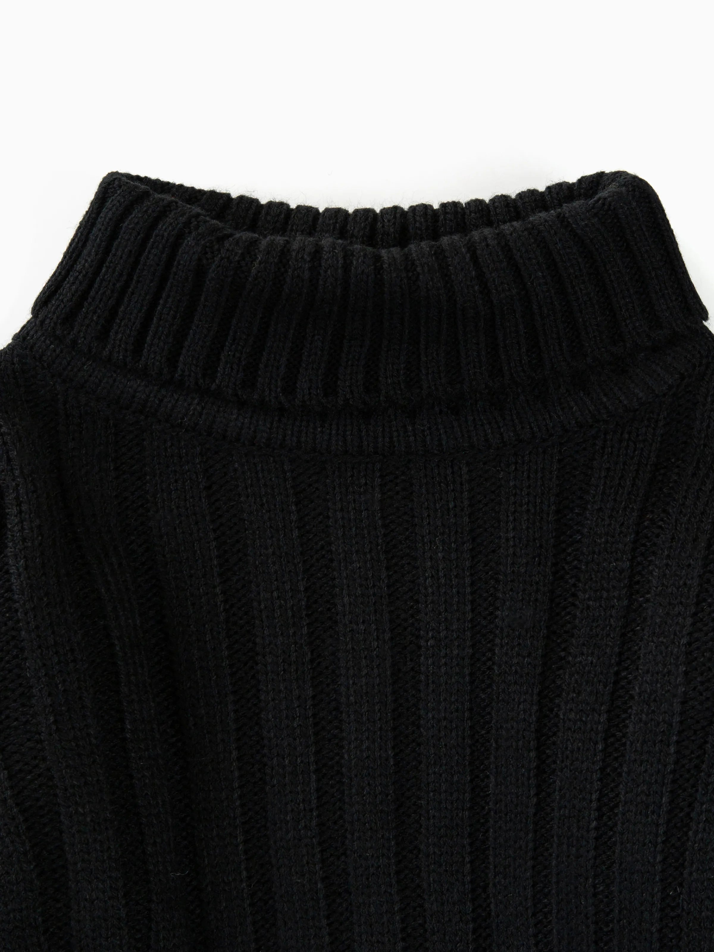 Toddler Girl/Boy Turtleneck Ribbed Knit Sweater Black