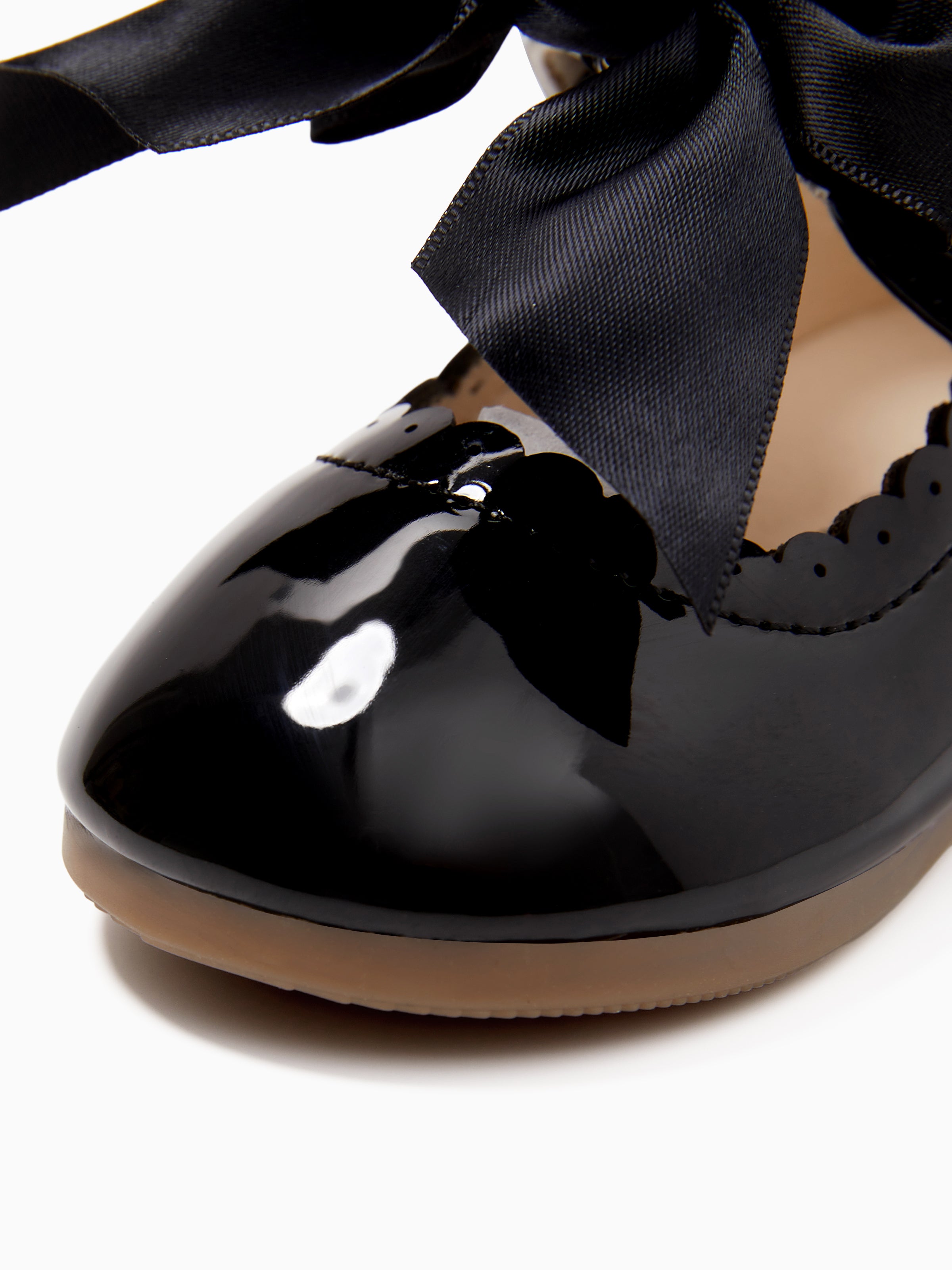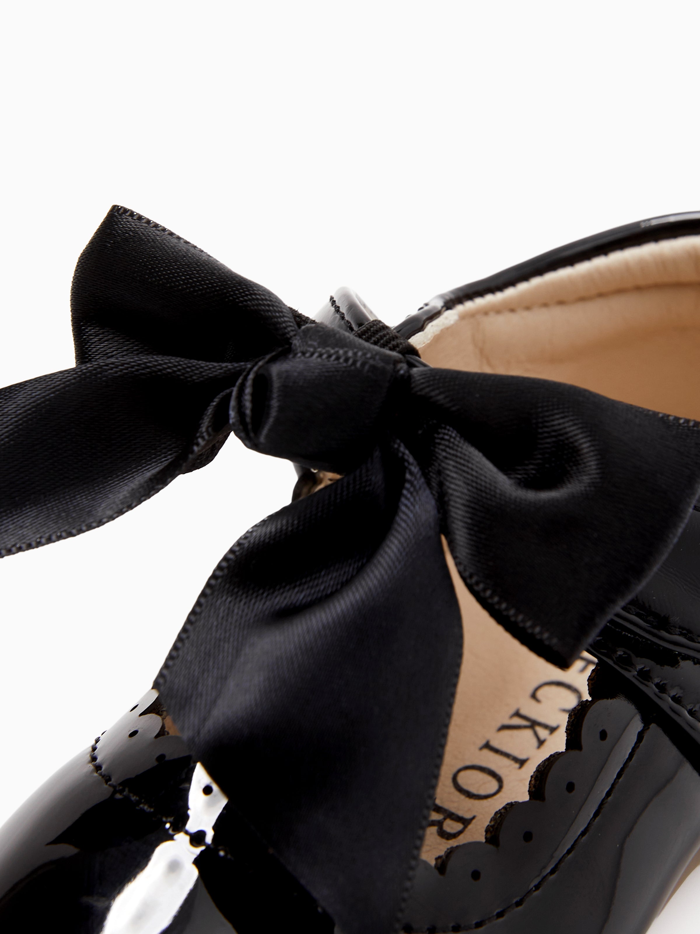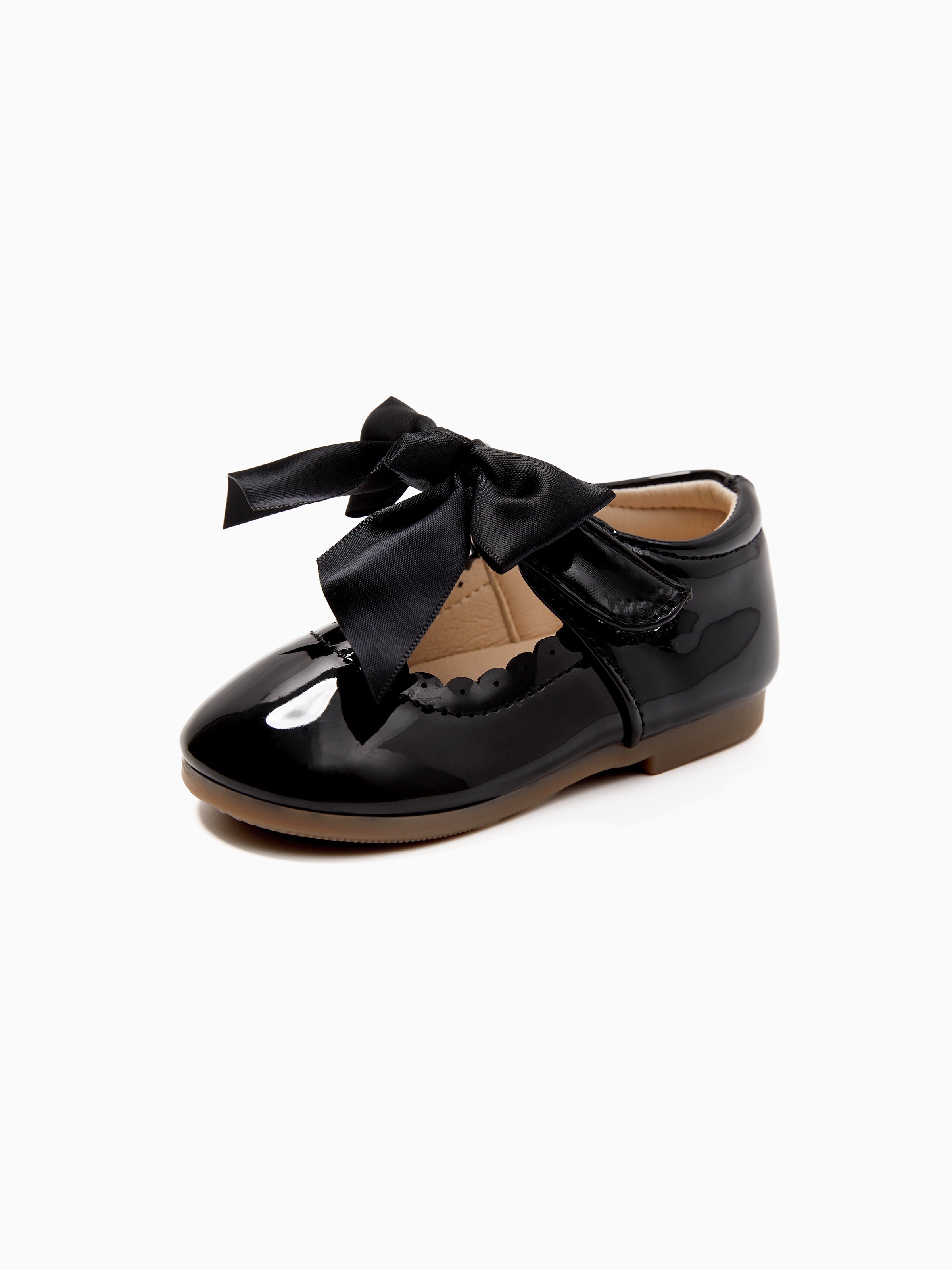 Toddler / Kid Wavy Edge Bow Ribbon Decor White Princess Shoes Black